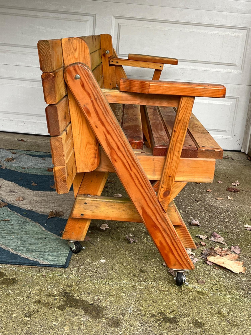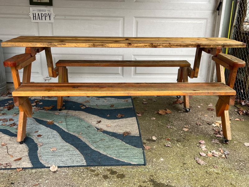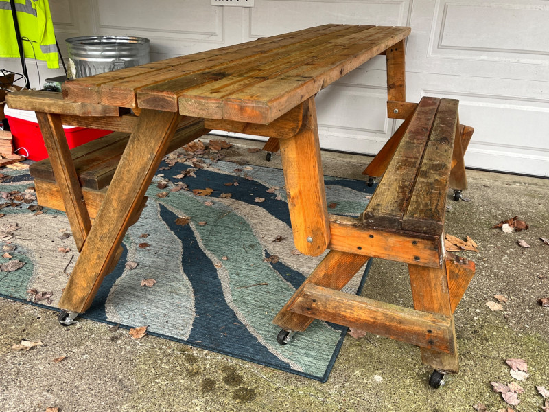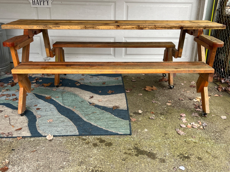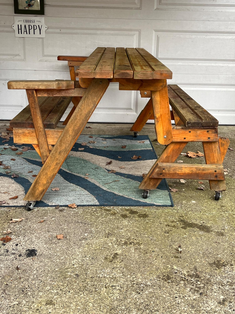 Lot # 250 - Handmade Convertible Picnic Table/Bench on Castors