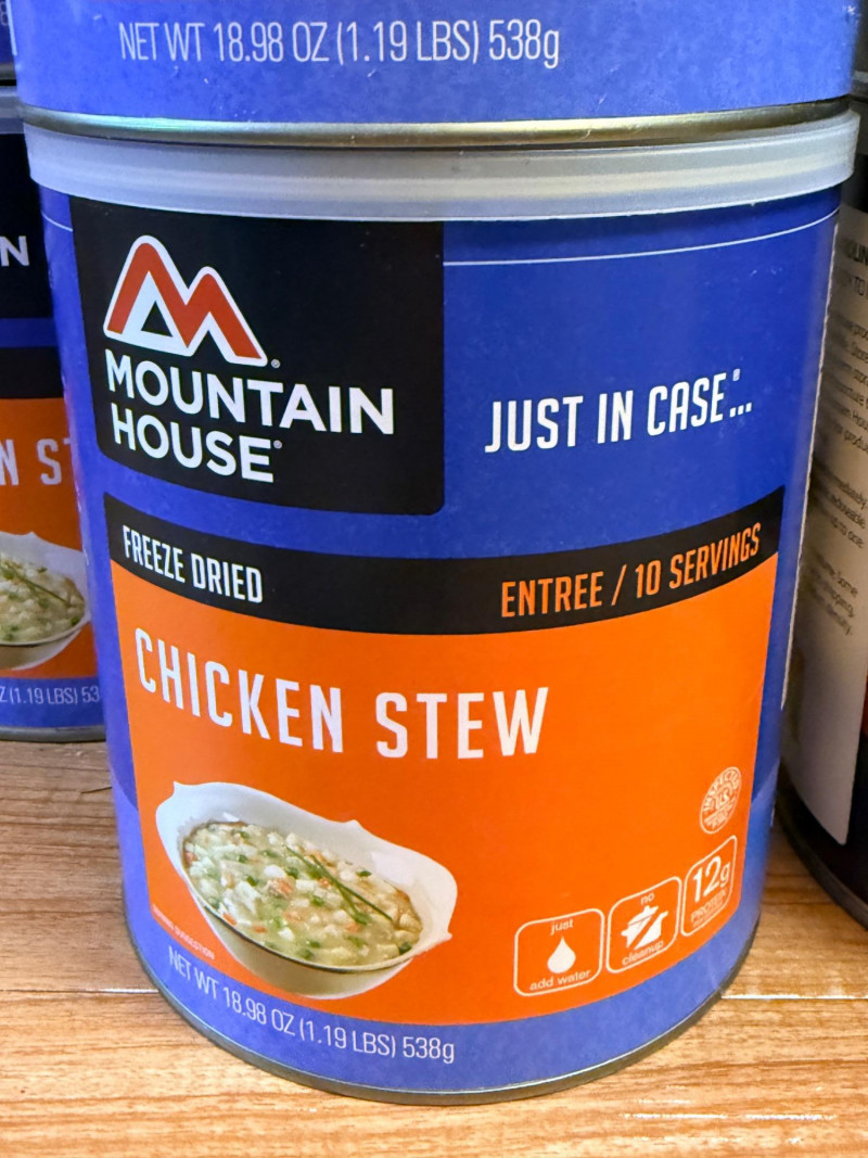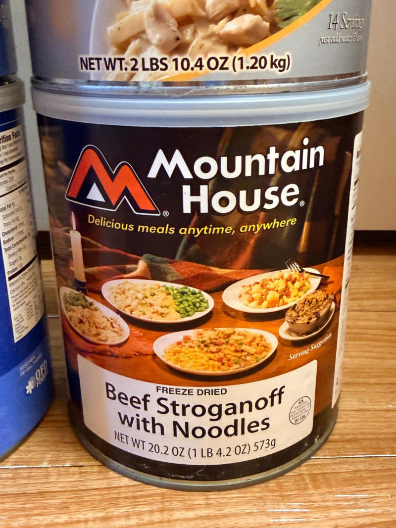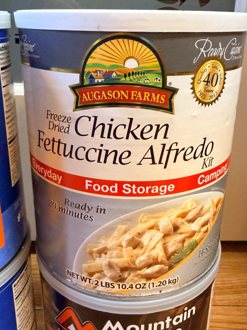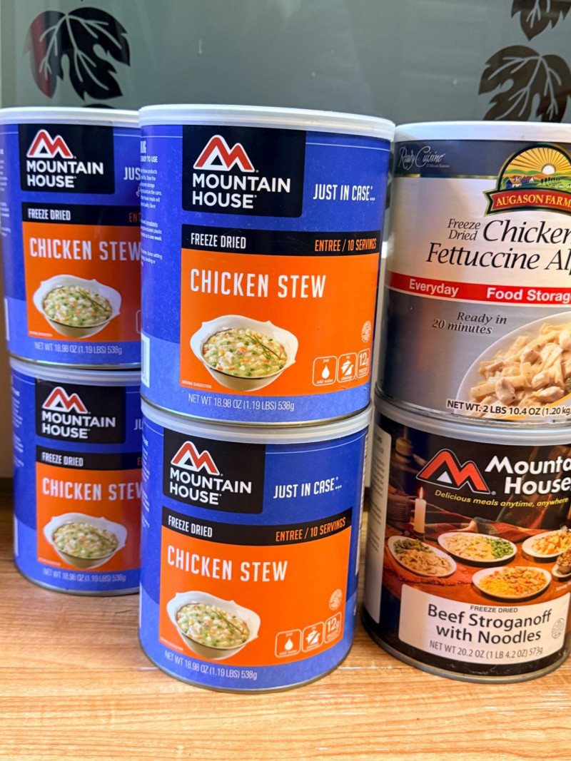 (6) Mountain House & Augason Farms Freeze Dried Emergency Meals (4) chicken stew beef stroganoff with noodles chicken fettuccine Alfredo Best By April 2048, Jan 2039