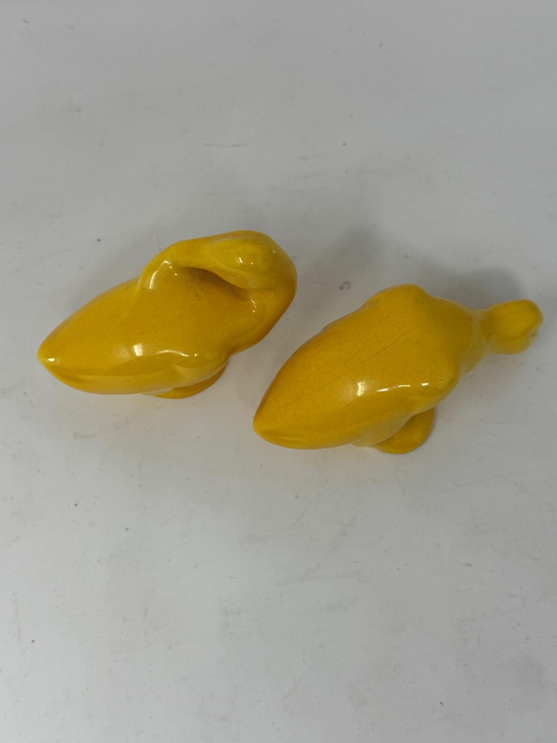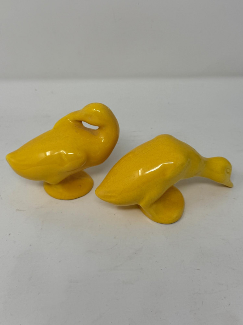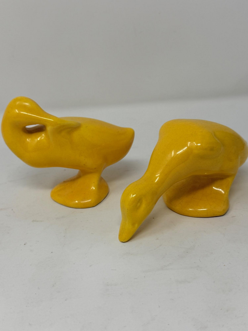 Lot # 279 - Vintage Yellow Ceramic Grazing and Preening Ducks