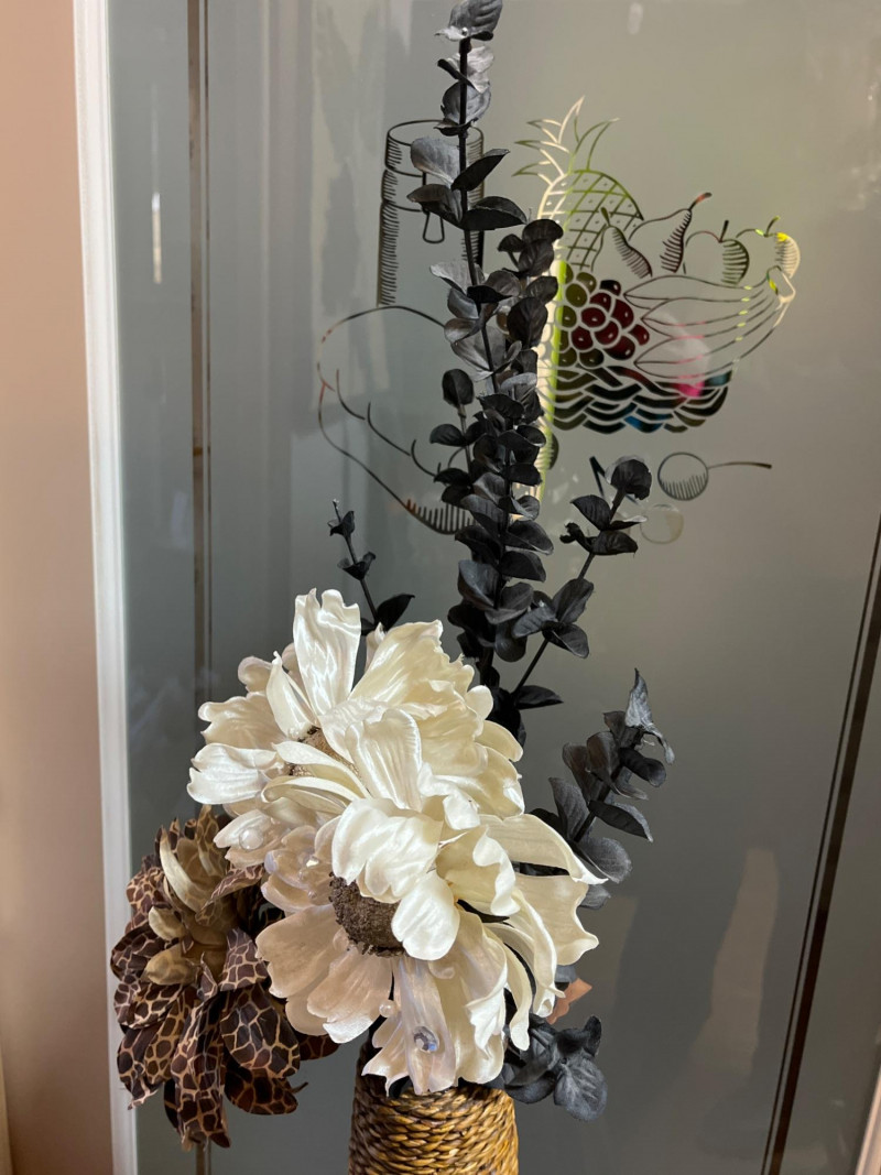Lot # 285 - Interior Accents Trumpet-Style Floor Vase with Decorative Flowers