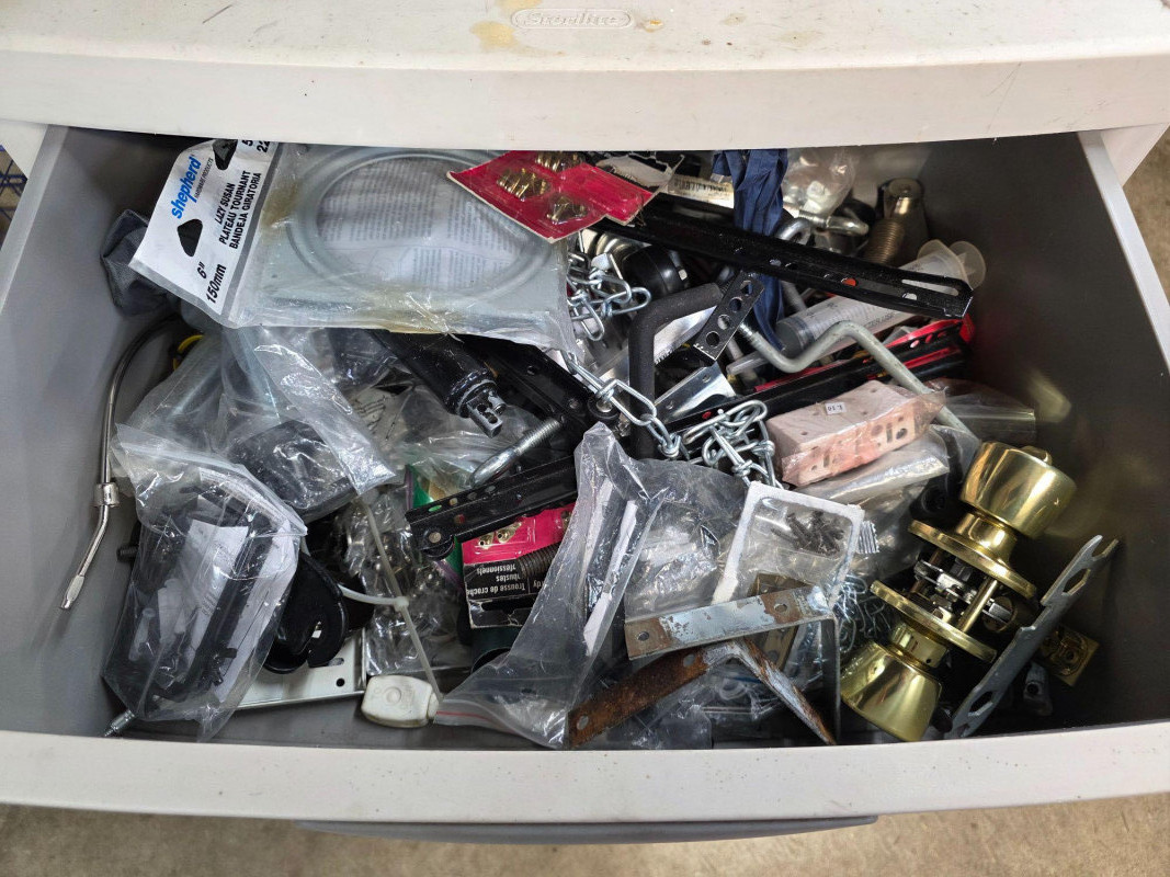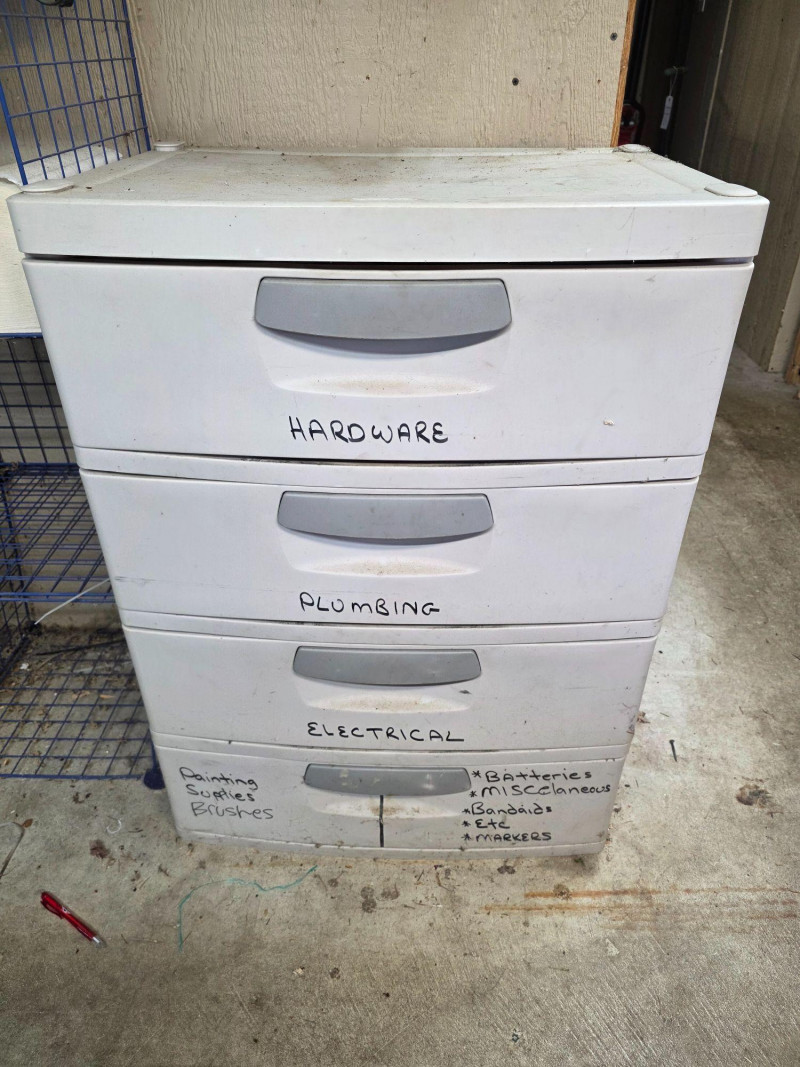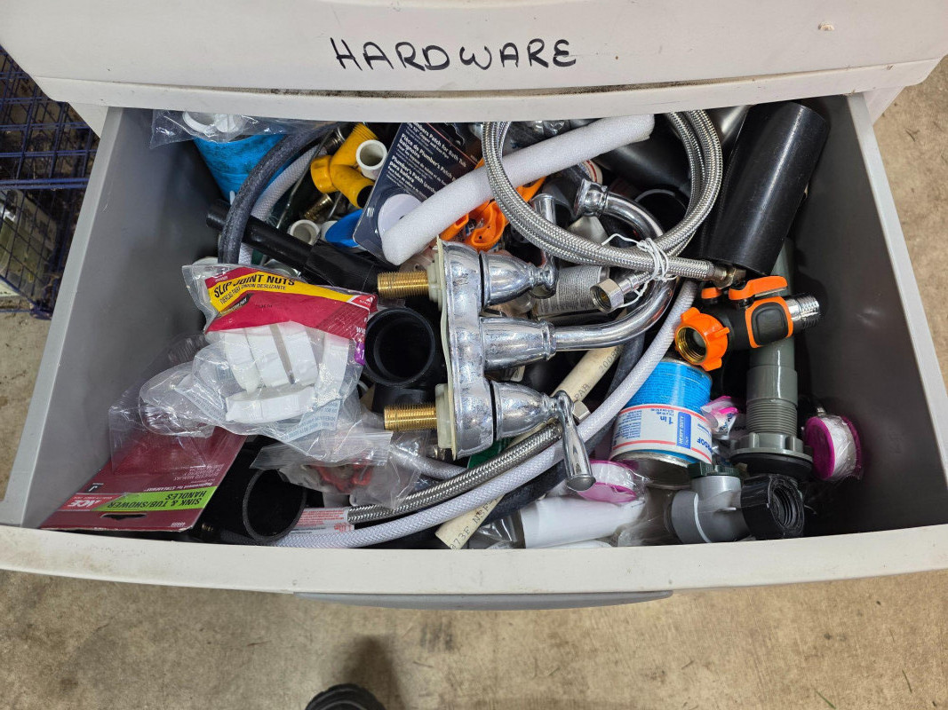 Sterilite 4-Drawer Unit Full Of Misc Painting, Plumbing & Electrical All sorts of miscellaneous stuff for plumbing, electrical & painting This unit is heavy! 35"T x 25.5"W x 19"D