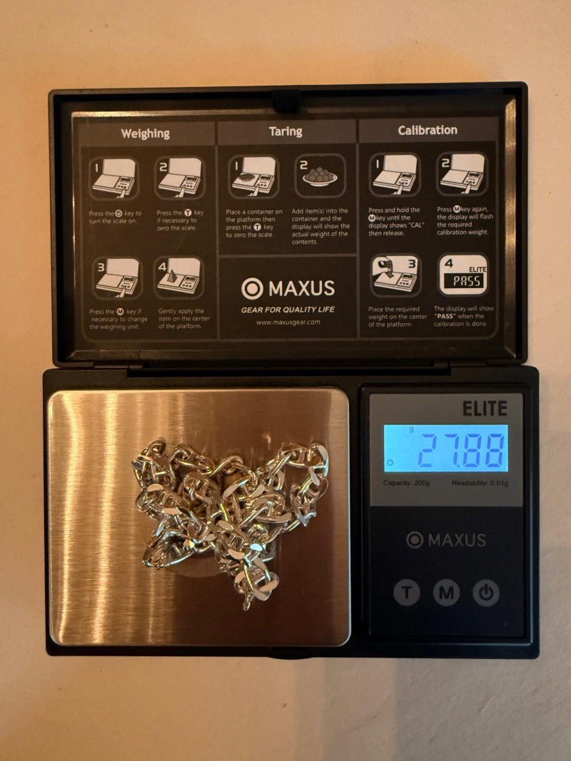 20” Sterling Silver Mariner or Anchor Chain Necklace 925 sterling silver, solid flat mariner style, which allows the chain to sit comfortably against the skin. 27.8 grams