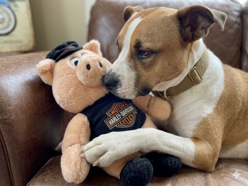 Harley-Davidson Duo-Glide Metal Sign & Stuffed Pig Embossed Metal Sign, Made in Great Britain is 11”x16” Pig measures 16” tall. It has been hanging in a garage and the fur is discolored from dust and age. Super cute and loving dog is not included and has not actually touched this pig.