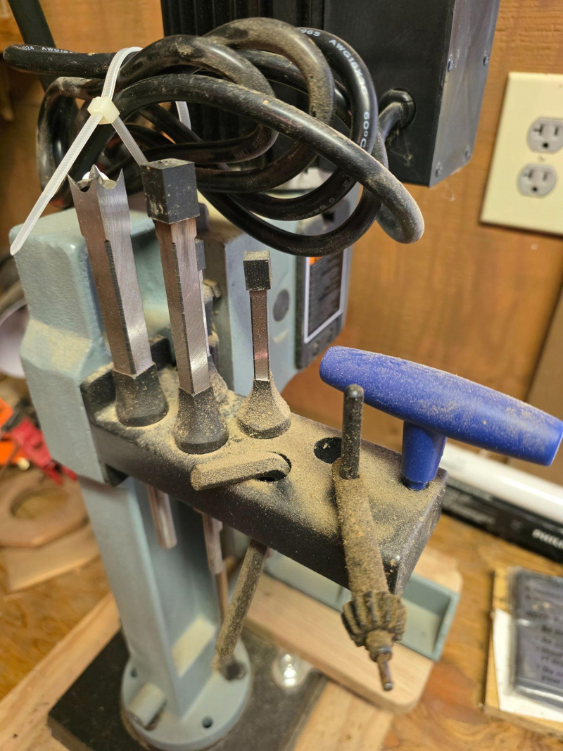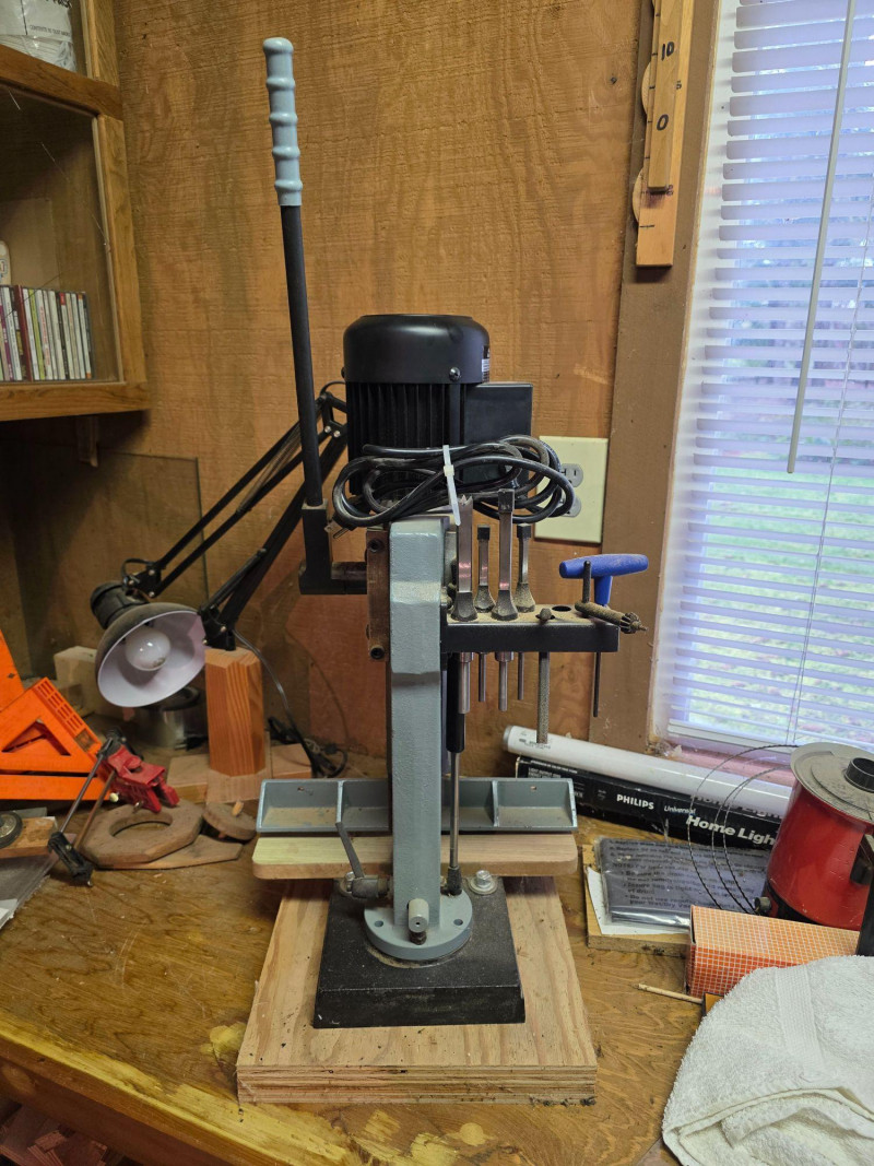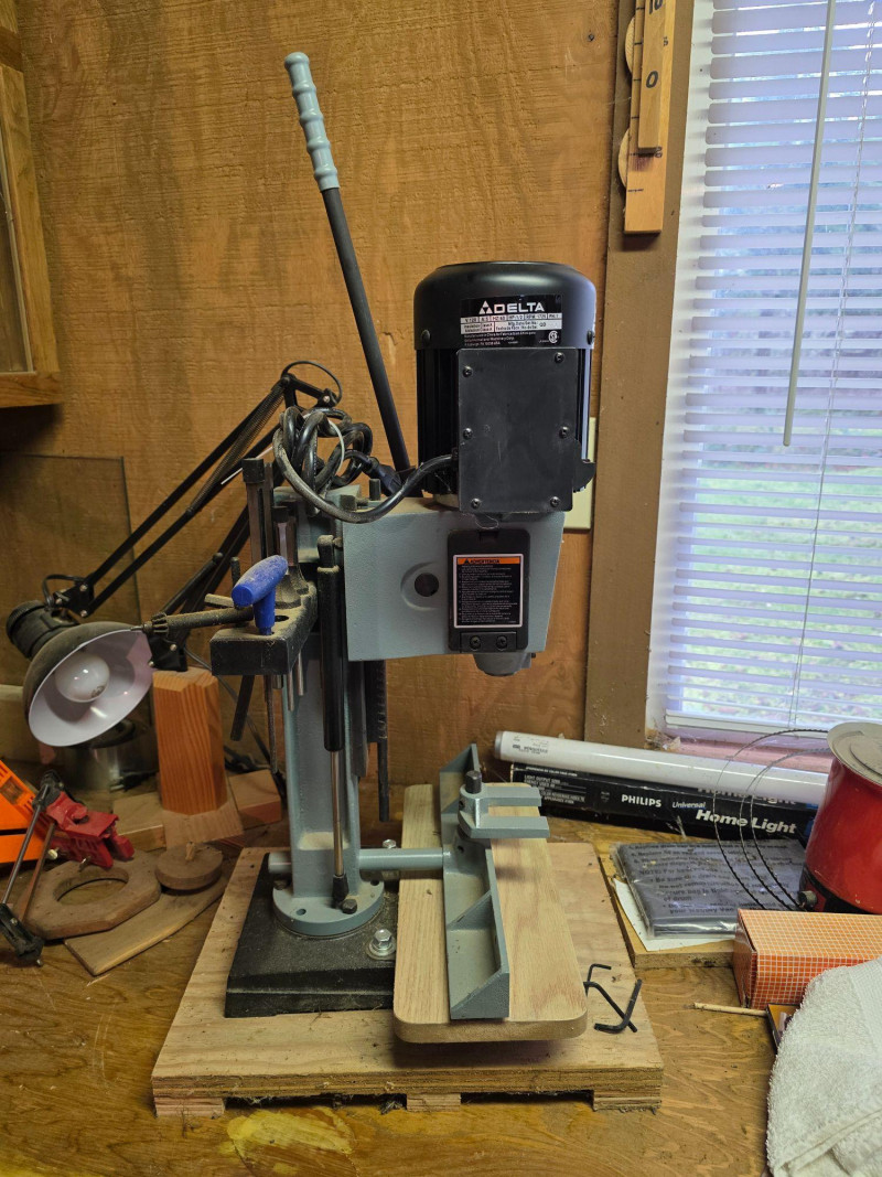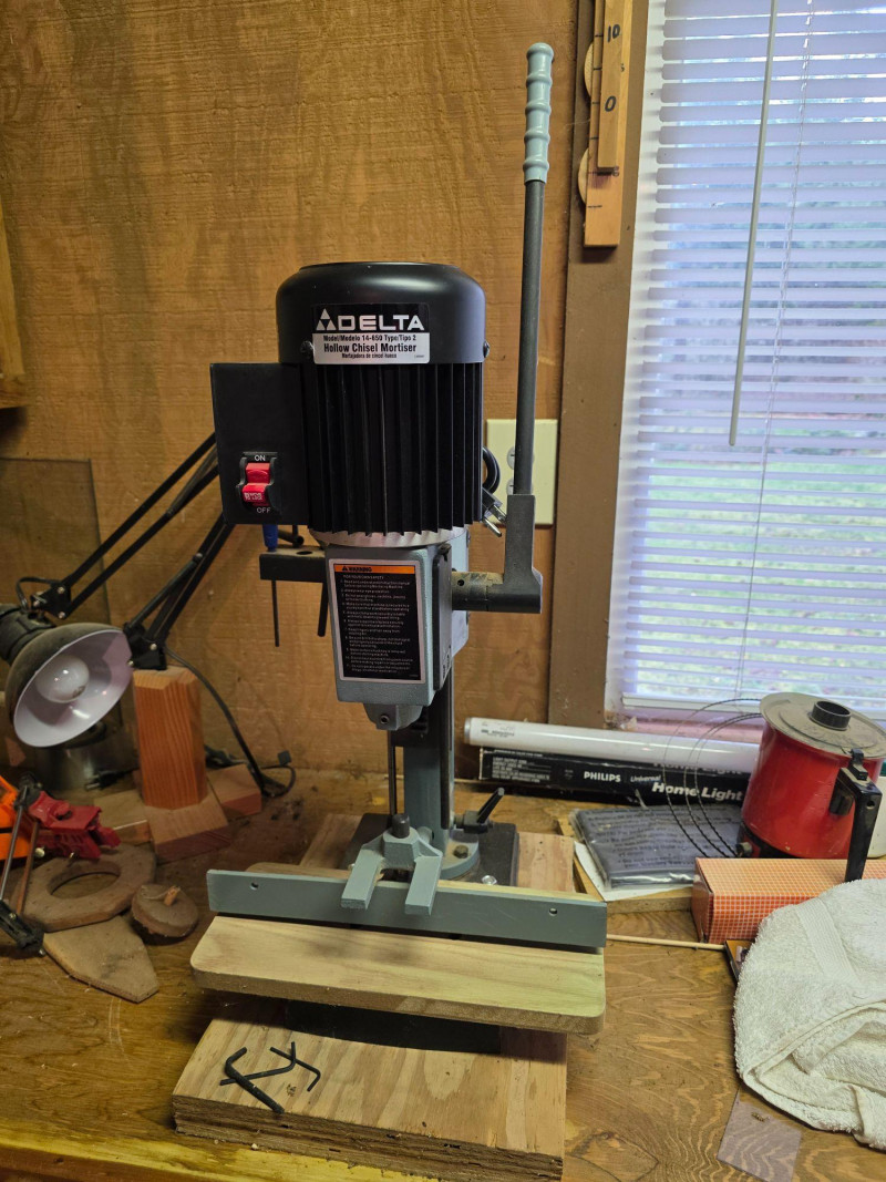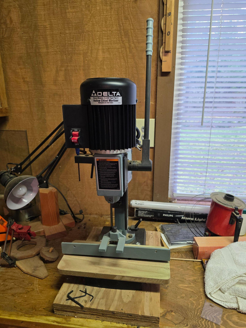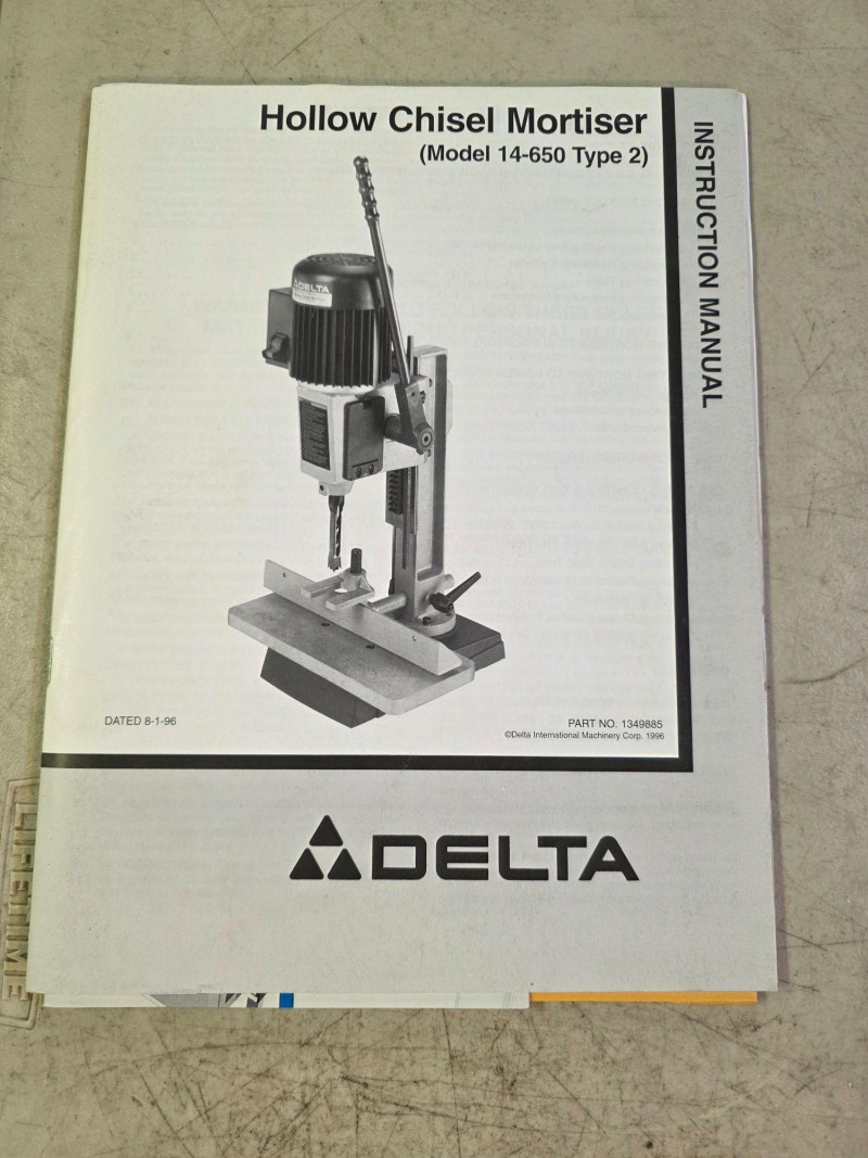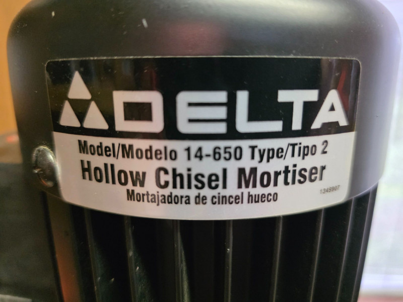 Delta 14-650 (Type 2) Hollow Chisel Mortiser Delta Model #14-650 Motor: 1/2 HP, 120V, 1 Phase. Speed: 3,400 RPM. Capacity: Typically handles chisel sizes from 1/4" to 1/2". Base & Table: Features a 7" cast iron base and a wide MDF table. Weight: Approximately 55–65 lbs Includes manual, 4 bits, T-handle wrench & chuck key Tested - Works! 31"T x 14"W x16"D