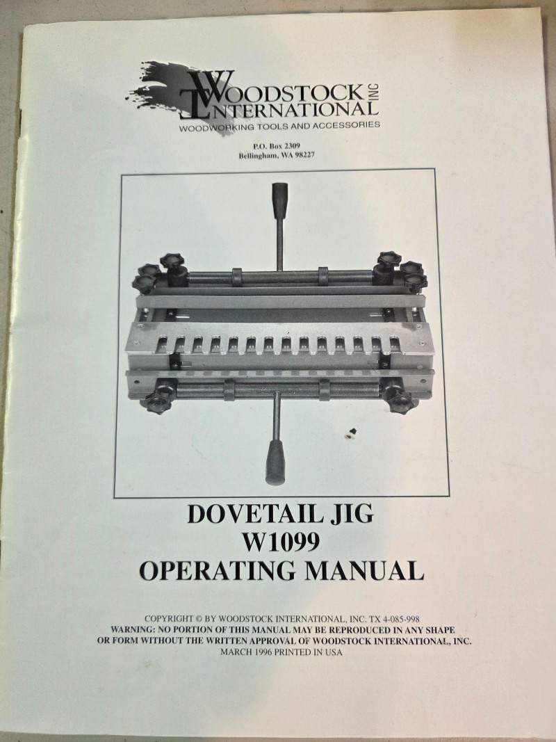 Woodstock International Dovetail Jig & Craftsman Dovetail Templates Woodstock International Dovetail Jig (W1099) designed for cutting dovetail joints for cabinetry and other projects Includes manual 6"T x 17 "W x 15"D Craftsman Dovetail Templates (92570) used with a router to cut dovetail joints for woodworking projects like drawers and boxes 4.5"T x 17"W x 8"D