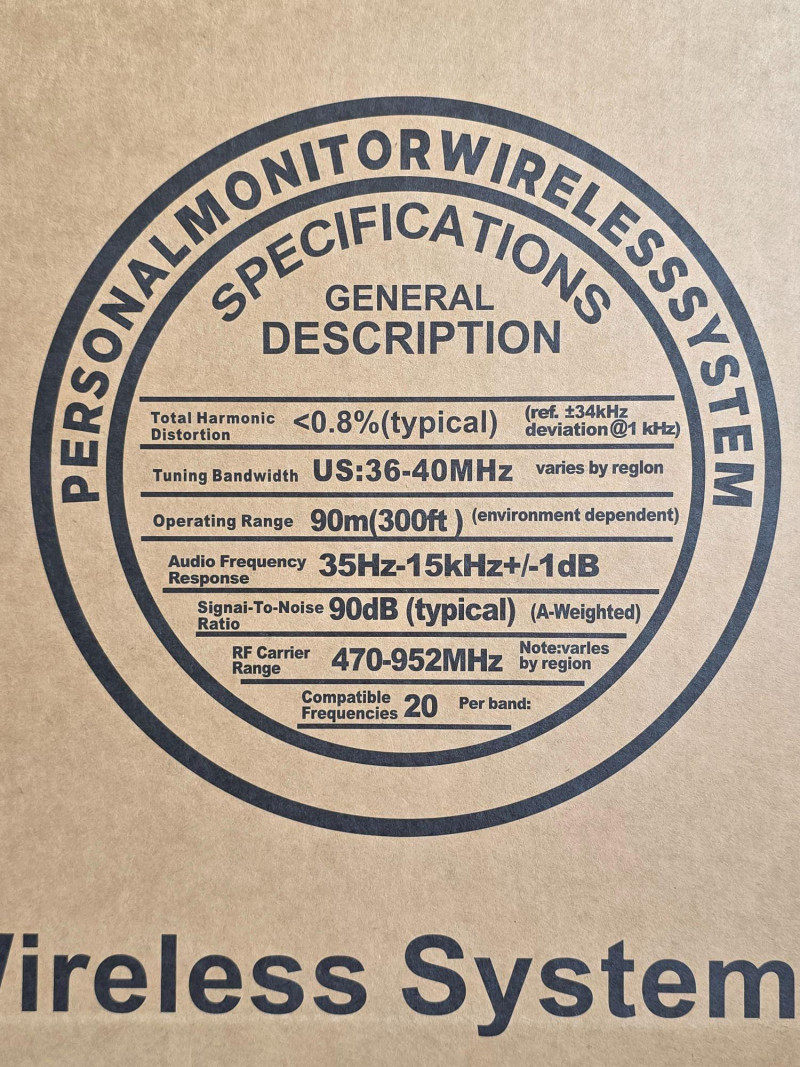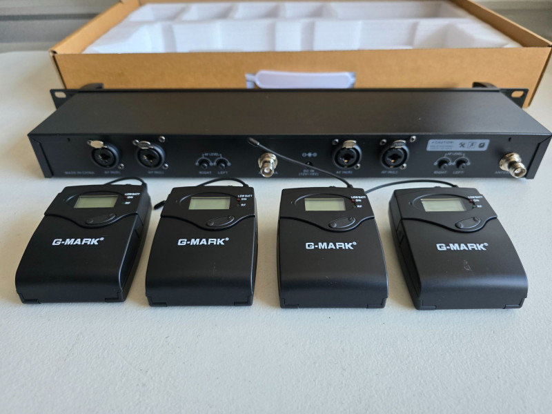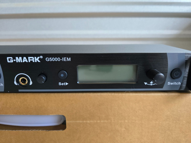 G-MARK Personal UHF Monitor Wireless System (New In Box) Model #G5000-IEM Professional In-Ear Monitoring (IEM) system typically used by performers for stage monitoring Operating Range: Up to 90m (300ft) depending on the environment Audio Frequency Response: 35Hz–15kHz with +/-1dB accuracy Signal-to-Noise Ratio: 90dB (typical) Frequency Channels: Supports up to 20 compatible frequencies per band Tuning Bandwidth: Approximately 36–40MHz Not tested