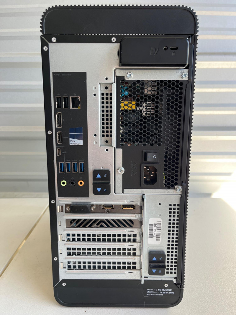 Dell XPS 8920 Tower Desktop 7th Generation Intel Core i7 processors (e.g., i7-7700 at 3.60GHz). The top panel has an SD card slot, headphone/microphone jacks, and four USB 3.0 ports. Supports DDR4 RAM. Has been wiped. Tested: Works. 15.25”Tx7”Wx13.5”D