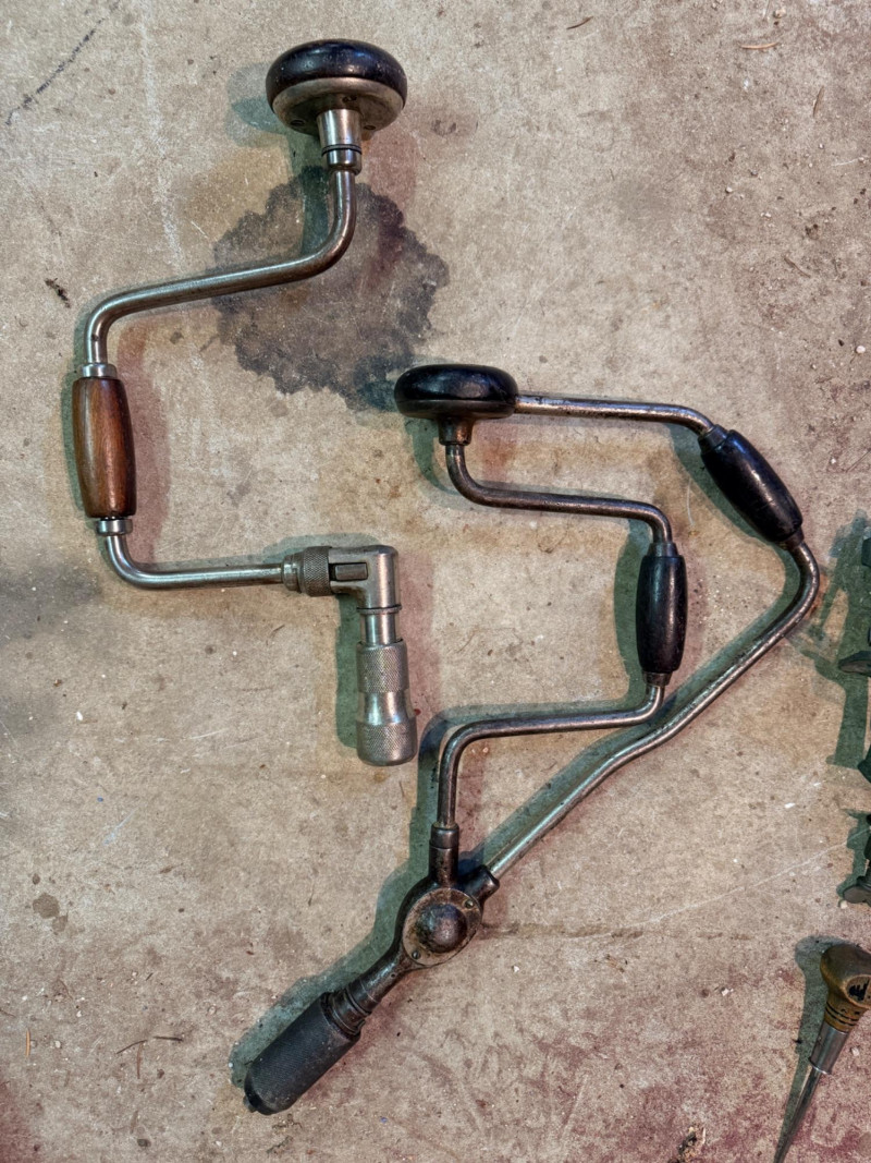 Lot # 306 - Old Wood Handle Hand Tools - Bit Brace Hand Drills