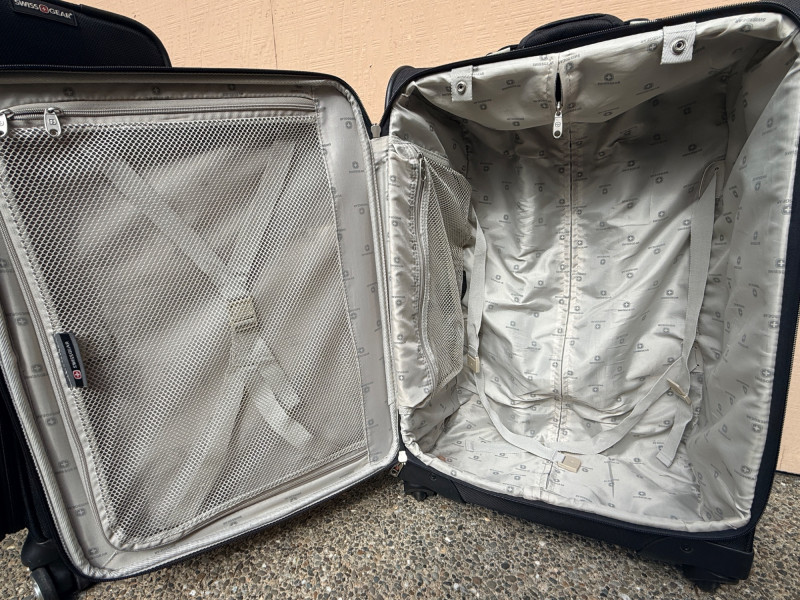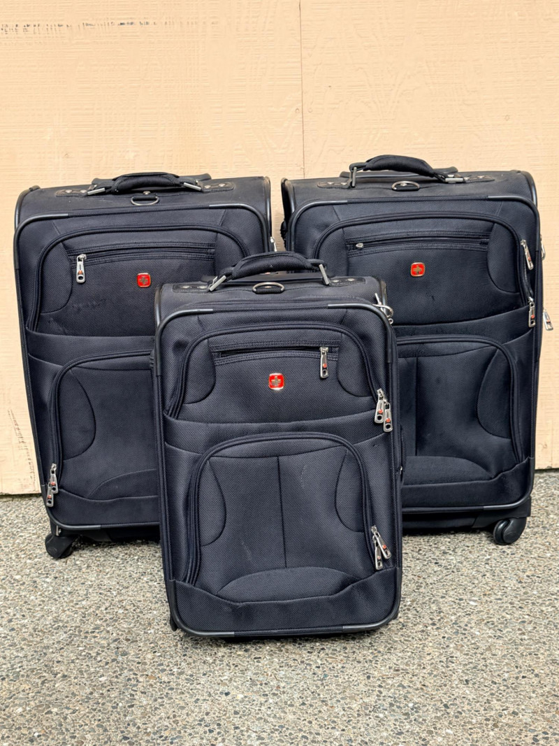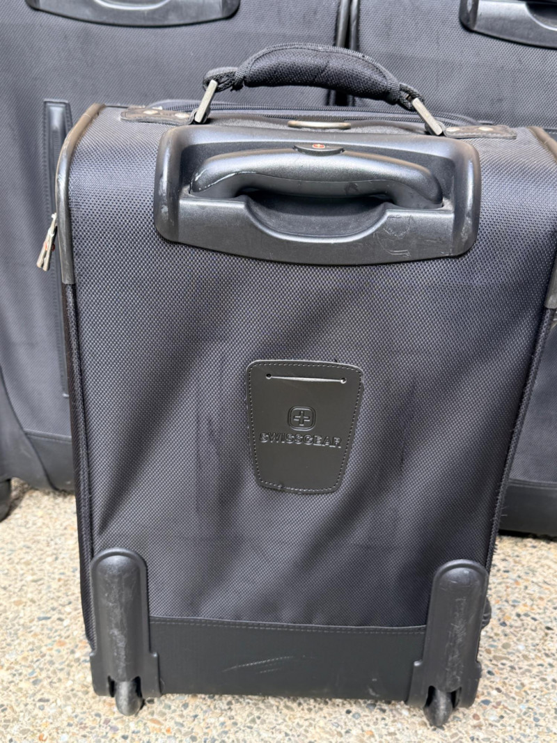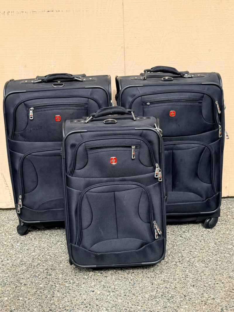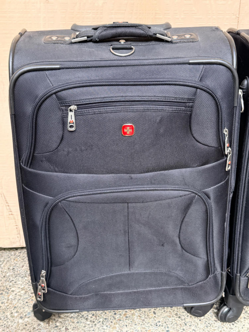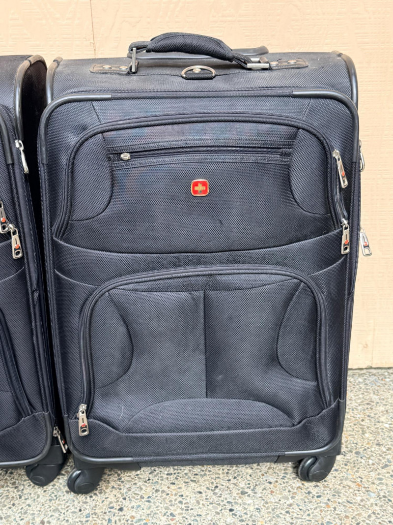 (3) Swiss Gear Suitcases & Carry-on 2 - Identical black Swiss Gear suitcases are 16.5”x11”x26” 1- Carry on is 13”x11”x21” All expandable and measurements are not expanded.
