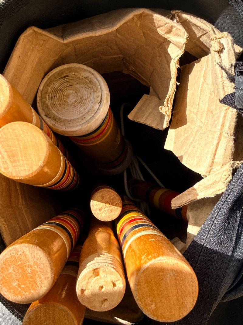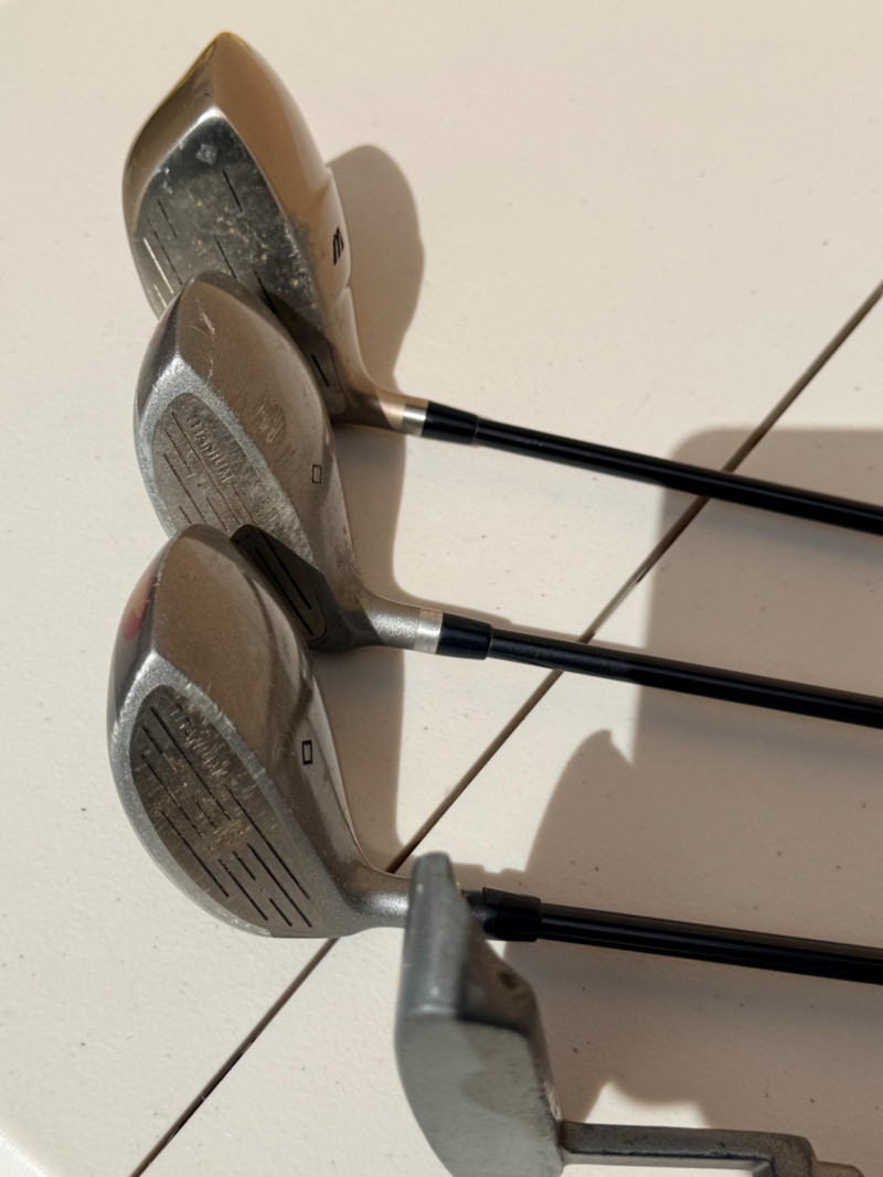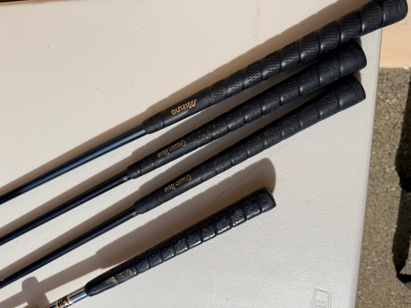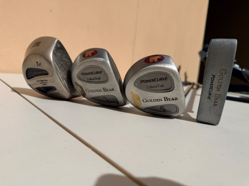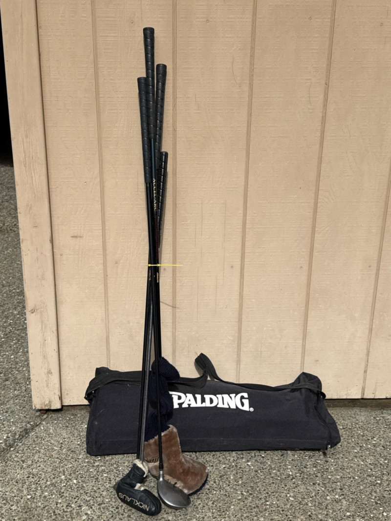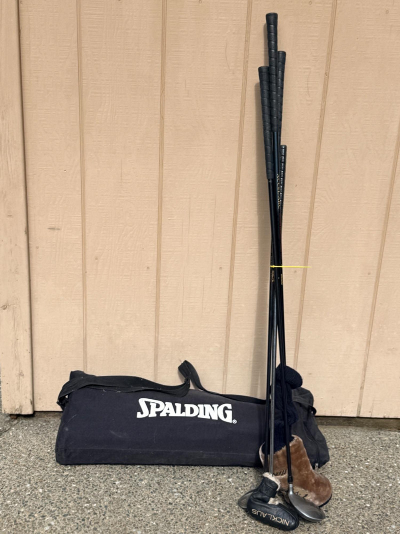 Outdoor Fun! Croquet & 4 Golf Clubs Spalding croquet set in carry bag Mizuno 1 Golden Bear 3,5 Golden Bear putter
