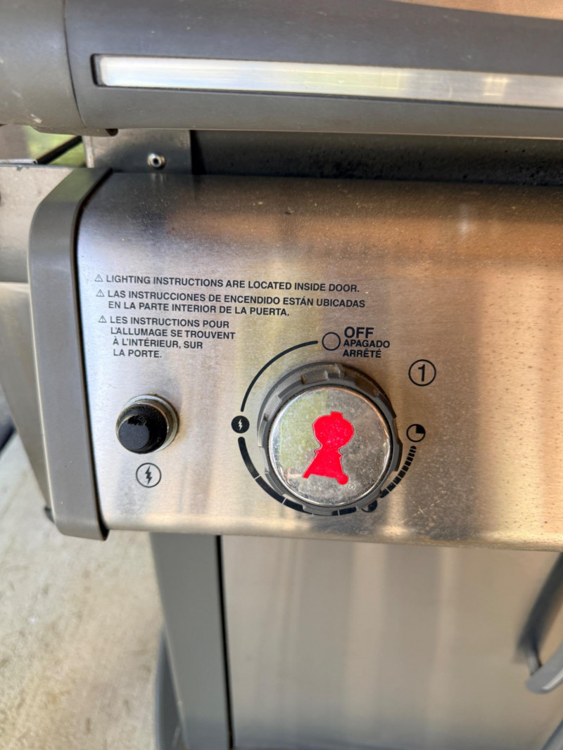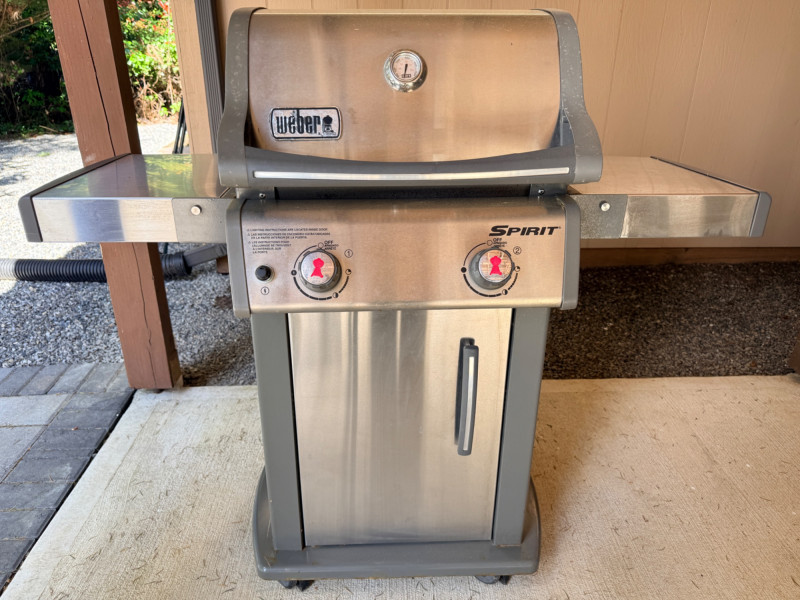 Weber Spirit S-210 gas grill, featuring a stainless steel cabinet and shroud.