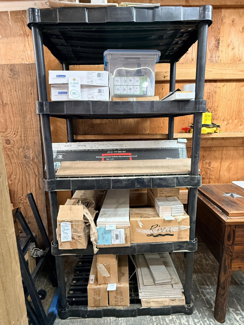 Rubbermaid 5 Shelf Unit Heavy duty shelving. Contents not included. 63”x40”x18”