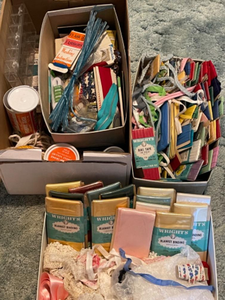 Lot # 18 - Vintage Bias Tape - Satin Blanket Binder - Buttons + Starting Bid: $ 5.00 Bids: This sale will end in: |
