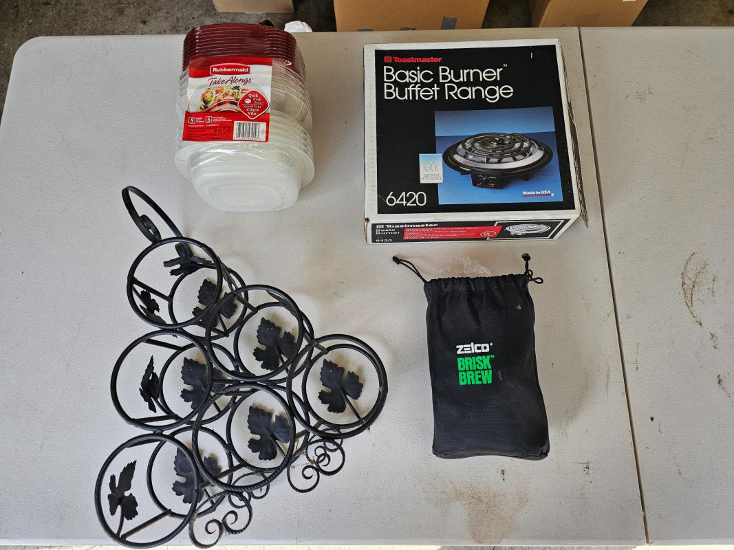 Sterlite storage shelving, refrigeration, pots and plants, outdoor decor. Small furniture pieces, cameras and so much more. Come take a look!