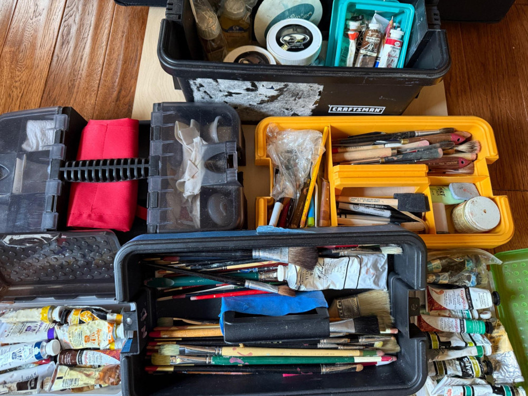 Lot # 22 - Artists Tote of Premium Brushes and Oil Paints Starting Bid: $ 5.00 Bids: This sale will end in: |