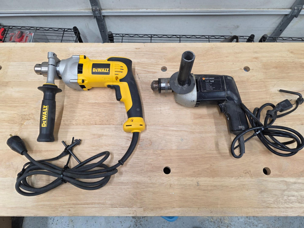 Lot # 18 - (2) Corded 1/2" Variable Speed Reversing Pistol Grip Drills Starting Bid: $ 5.00 Bids: This sale will end in: |