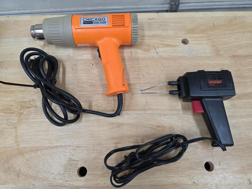 Lot # 36 - Chicago Electric Heat Gun & Ungar 75Watt Soldering Gun Starting Bid: $ 5.00 Bids: This sale will end in: |