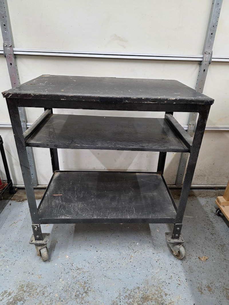 Lot # 42 - Homemade Steel & Plywood Rolling Tool Cart Starting Bid: $ 5.00 Bids: This sale will end in: |