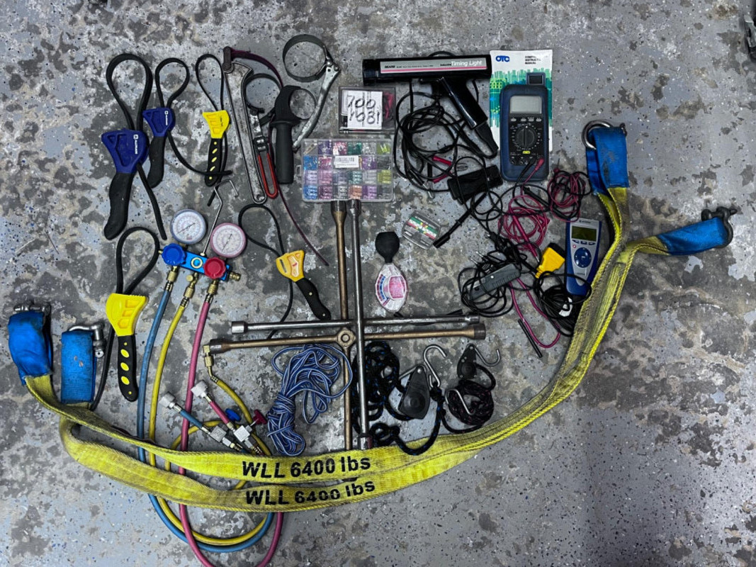 Aluminum ladders and all the things you would find in the shop.