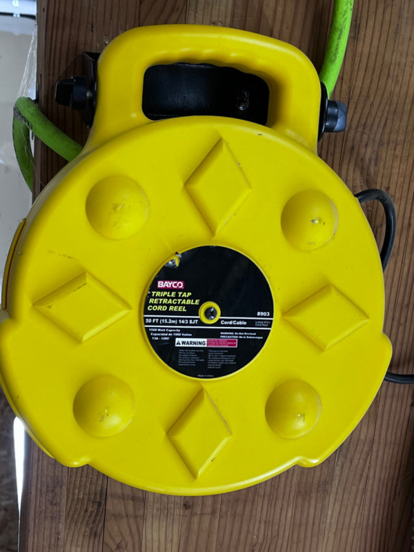 Lot # 177 - Bayco Triple Tap Retractable 50' Electrical Cord Reel Starting Bid: $ 5.00 Bids: This sale will end in: |