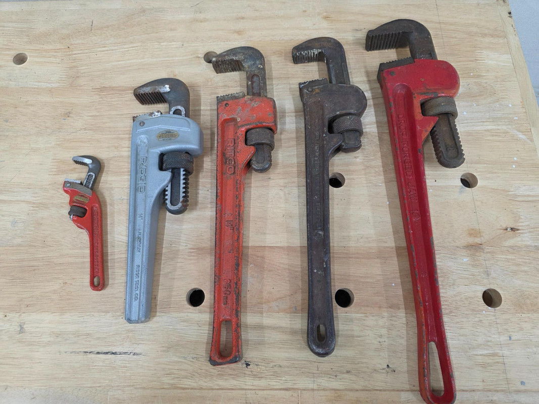 Lot # 181 - (5) Adjustable Pipe Wrenches Starting Bid: $ 5.00 Bids: This sale will end in: |