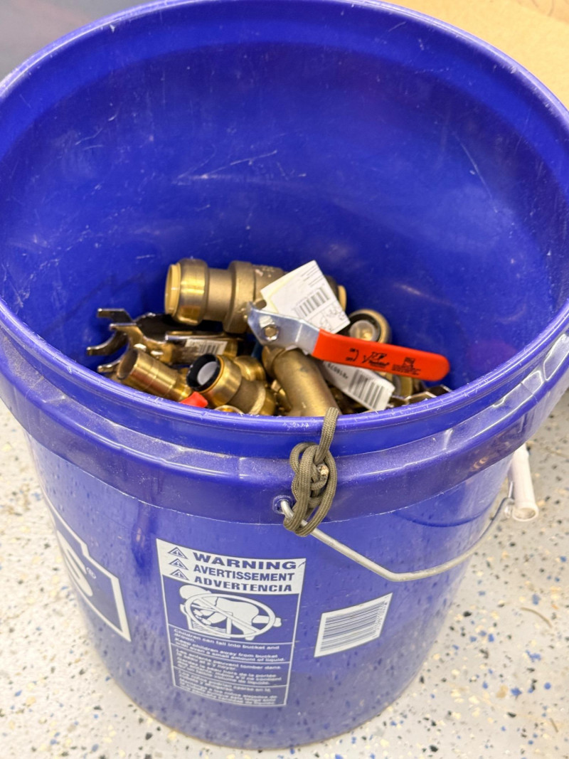 Lot # 138 - Brass Pipe Fittings and Valves - Half of a 5 Gallon Bucket Full Starting Bid: $ 5.00 Bids: This sale will end in: |
