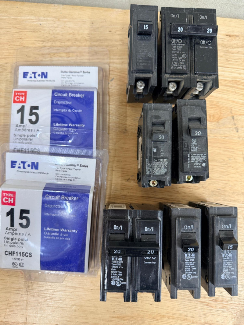 Lot # 145 - Cutler-Hammer, Eaton and Siemens 15, 20, and 30 amp Circuit Breakers Starting Bid: $ 5.00 Bids: This sale will end in: |