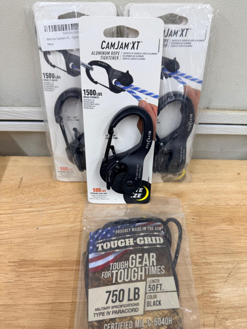Lot # 150 - (5) Nite Ize Cam Jam Aluminum Rope Tightener & 50’ Paracord Starting Bid: $ 5.00 Bids: This sale will end in: |