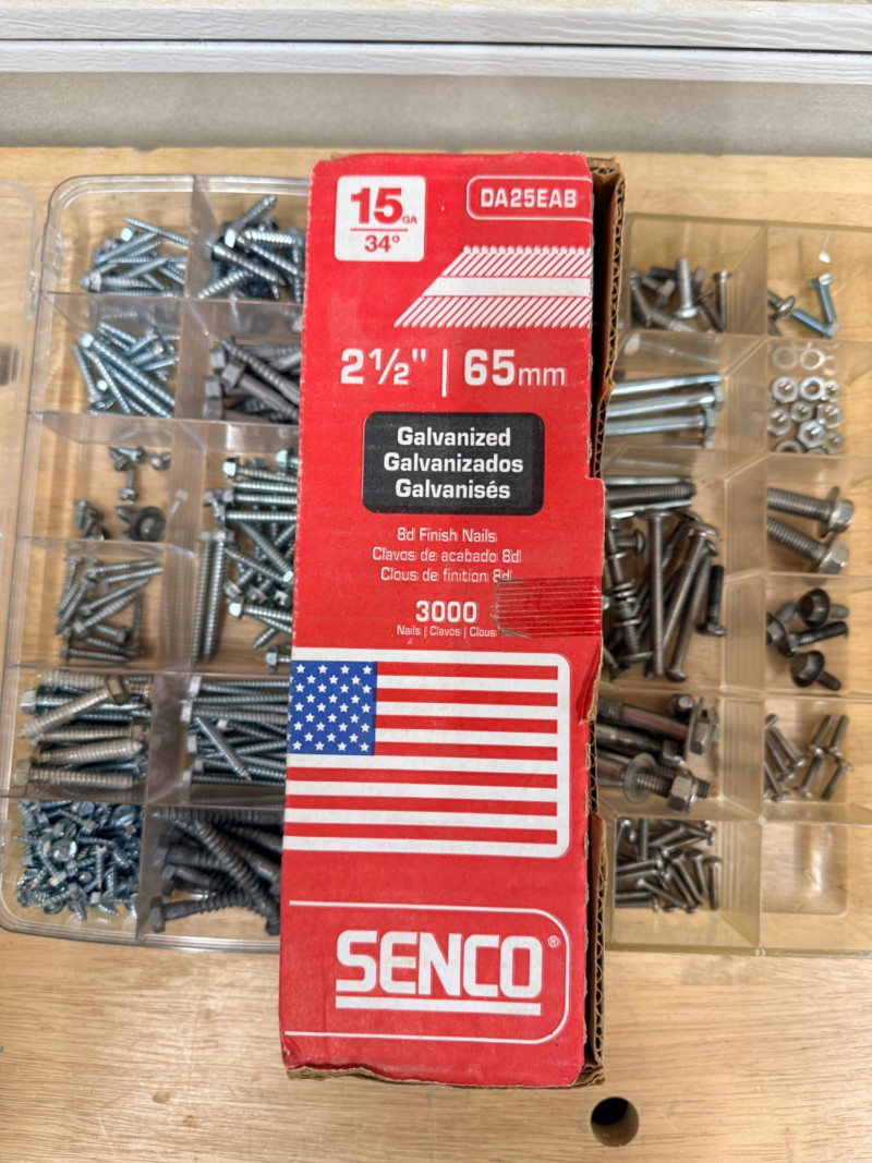 Lot # 156 - Senco Galvanized Air Nails, Stainless Fasteners & Hex Head Connectors Starting Bid: $ 5.00 Bids: This sale will end in: |