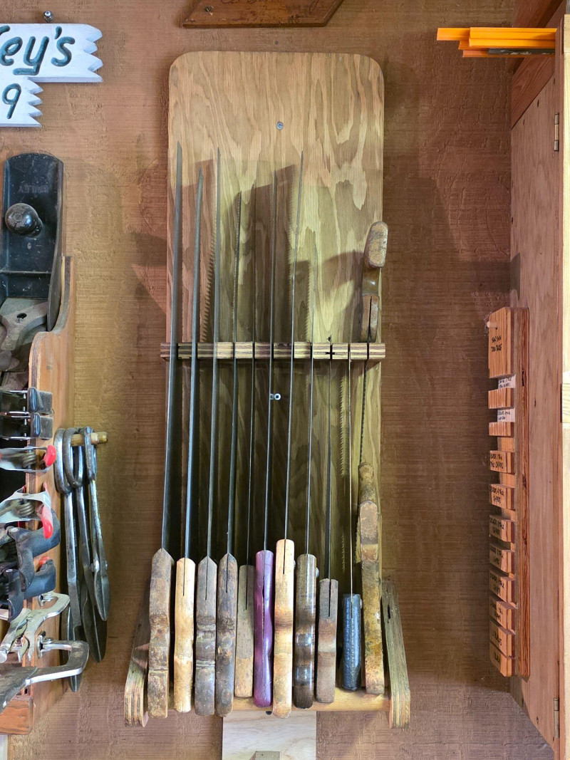 Lot # 264 - (11) Wood Saws With Custom Wall Storage Rack Starting Bid: $ 5.00 Bids: Bidding starts in: |