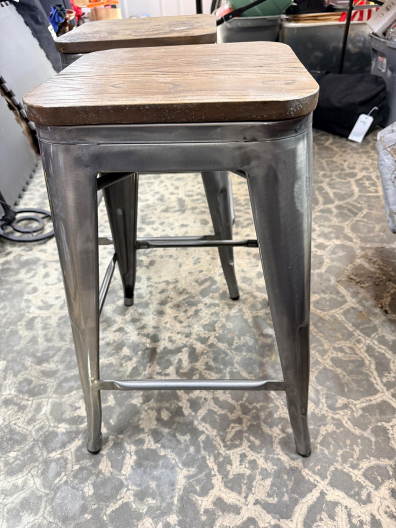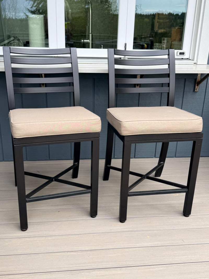 Lot # 132 - 2 Metal Indoor/Outdoor Bar Height Stools & Cushions Starting Bid: $ 5.00 Bids: This sale will end in: |