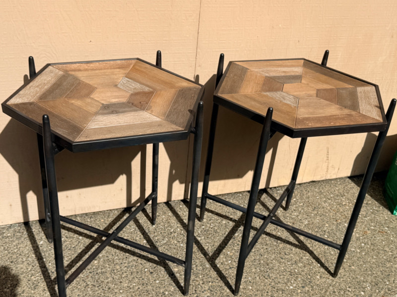 Lot # 119 - (2) Collapsible Metal Frame Wood Top Side Tables Starting Bid: $ 5.00 Bids: This sale will end in: |