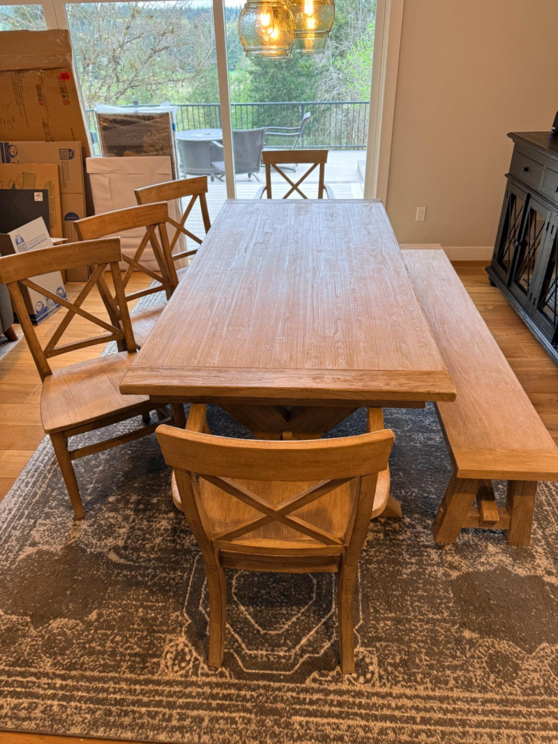 Lot # 20 - Pottery Barn Toscana Extendable Dining Table, Chairs & Bench Starting Bid: $ 1000.00 Bids: This sale will end in: |
