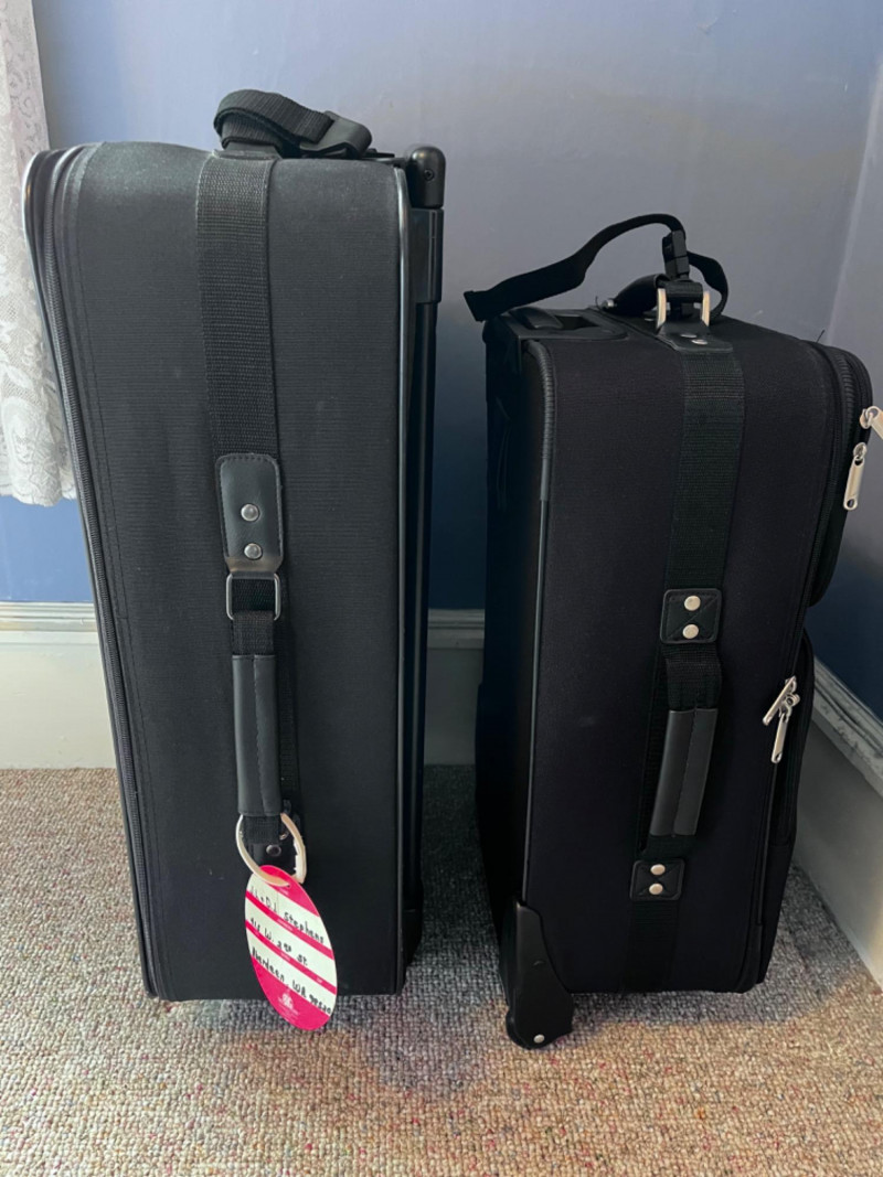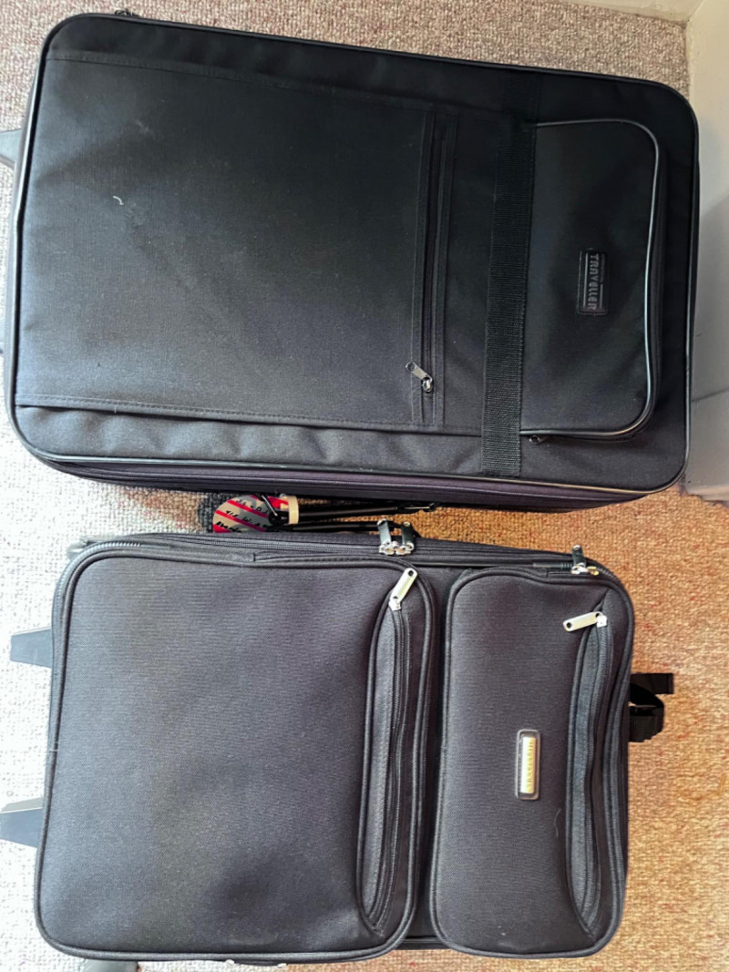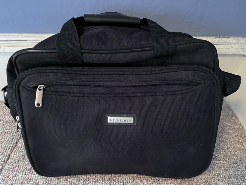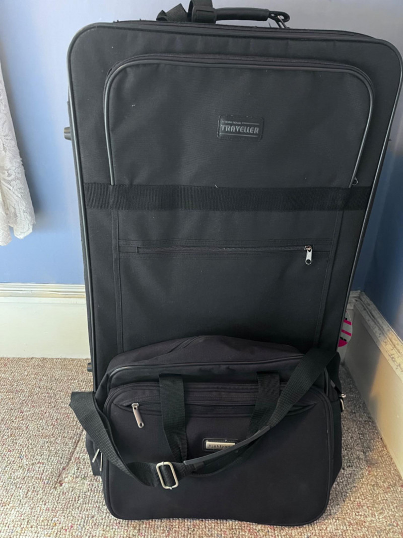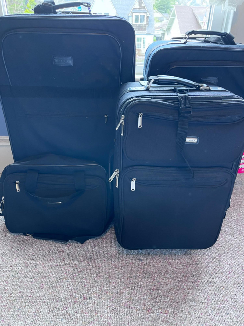 (4) Piece Black Luggage Collection Largest is 18.5”x10”x28”. Smaller one is 17”x9”x27”. Black Highlands suitcase. Black Highlands carry on bag. 17”x5.5”x11”