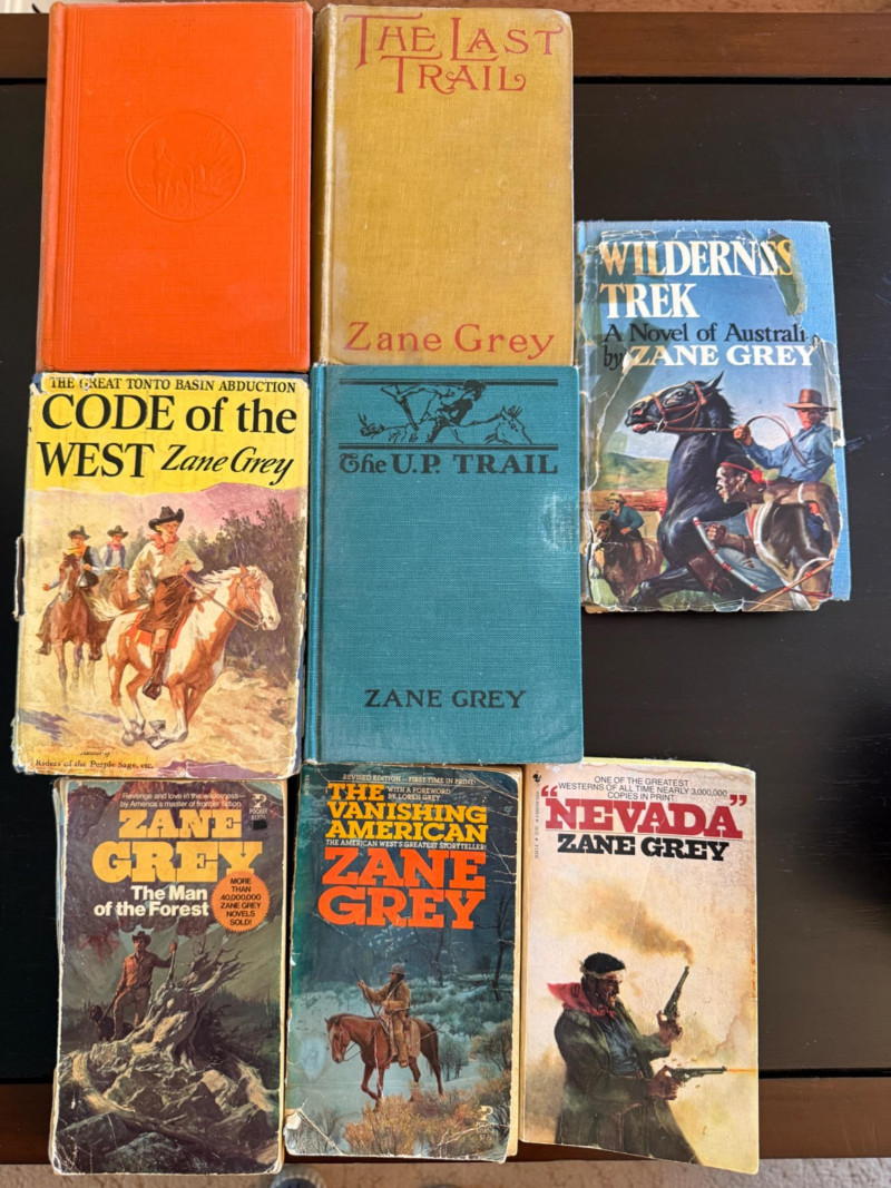 Zane Grey Hard and Soft Cover Books from 1909-1984 Hard covers include: Code of the West The U.P. Trail Wilderness Trek The Last Trail Western Union Shadow in the Trail and more Soft Covers: Nevada The Vanishing American The Man of the Forest