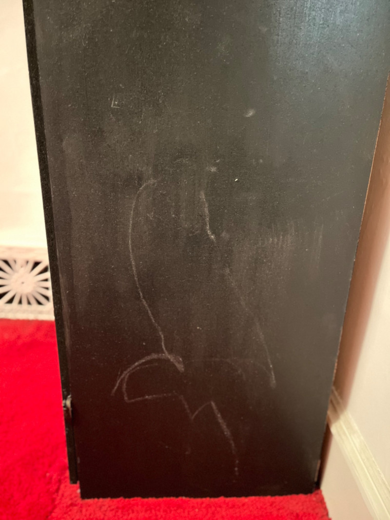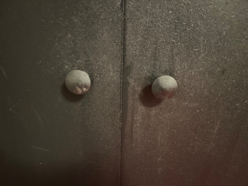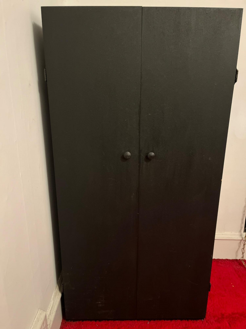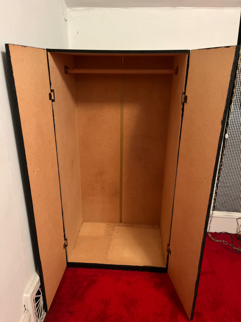 Handcrafted Double Door Wardrobe Cabinet Back of wardrobe is warped. Some markings. 30”x21”x60”