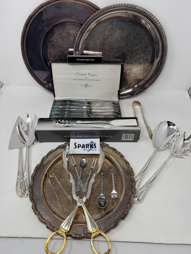 Lot # 70 - Silver Plate Serving Accessories & Platters