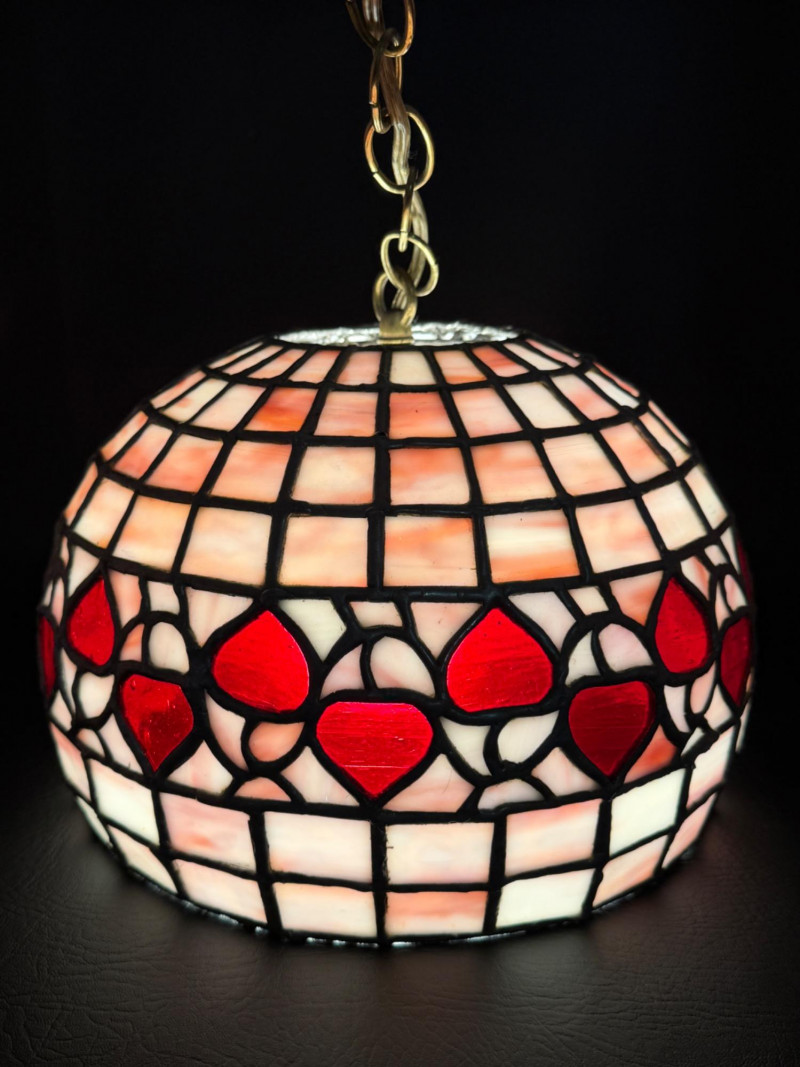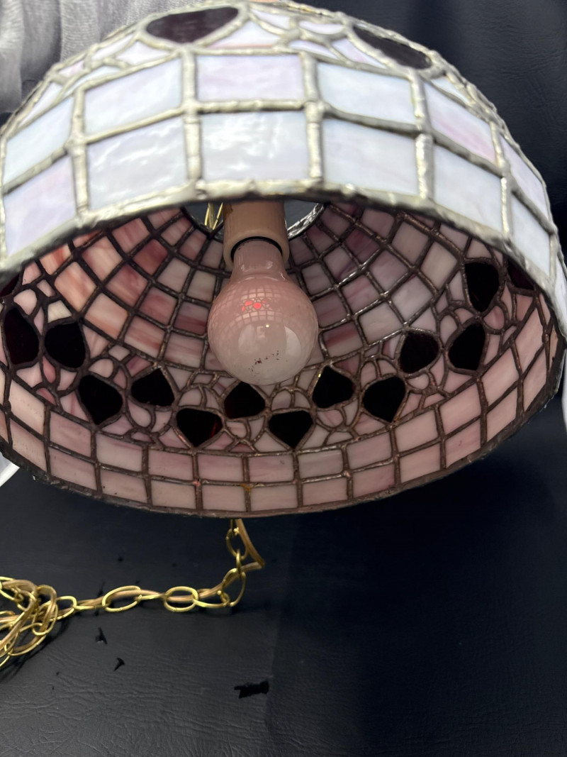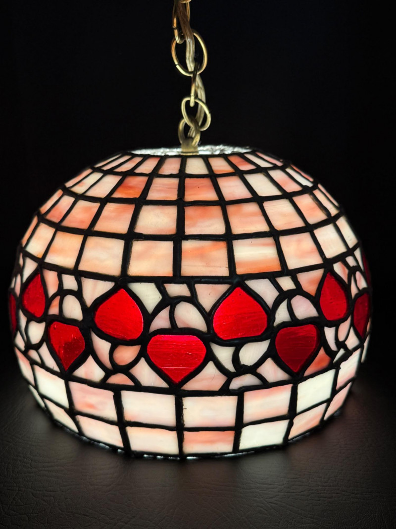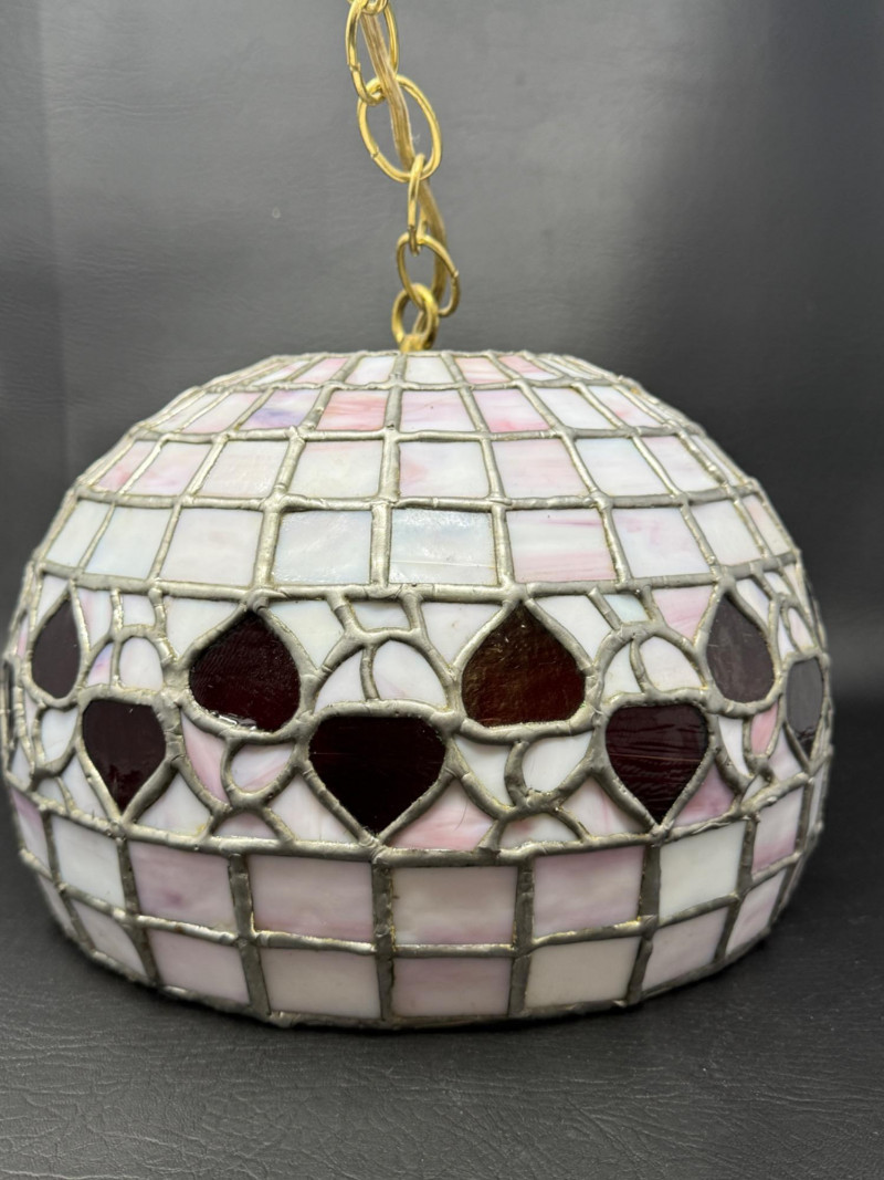 1970’s Stained Glass Pendant Swag Lamp Beautiful light fixture, works.