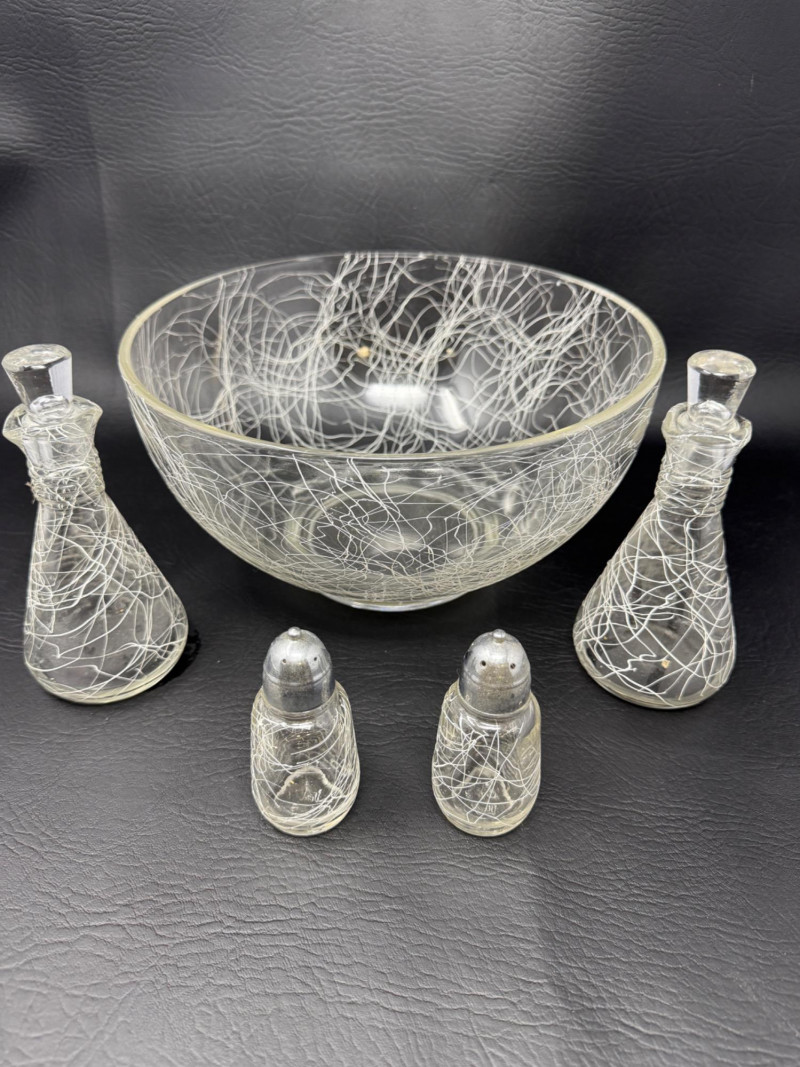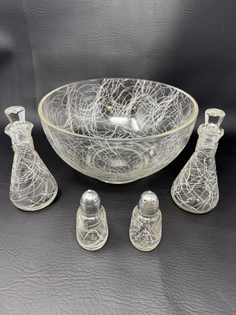 Lot # 77 - MCM Hazel-Atlas Spaghetti String or Drizzle Glass Salad Set
