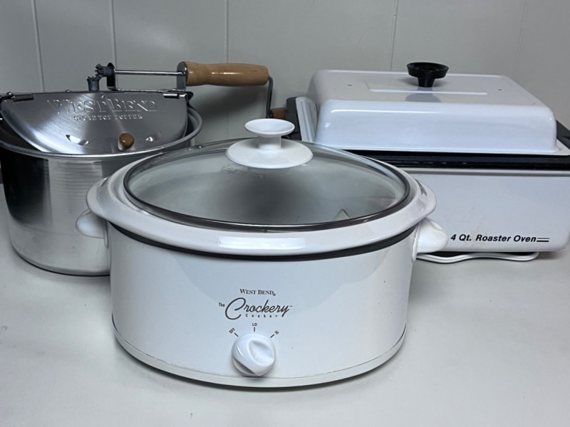 Lot # 86 - West Bend The Crockery Cooker—Stove Top Popper—Nesco Roaster Oven