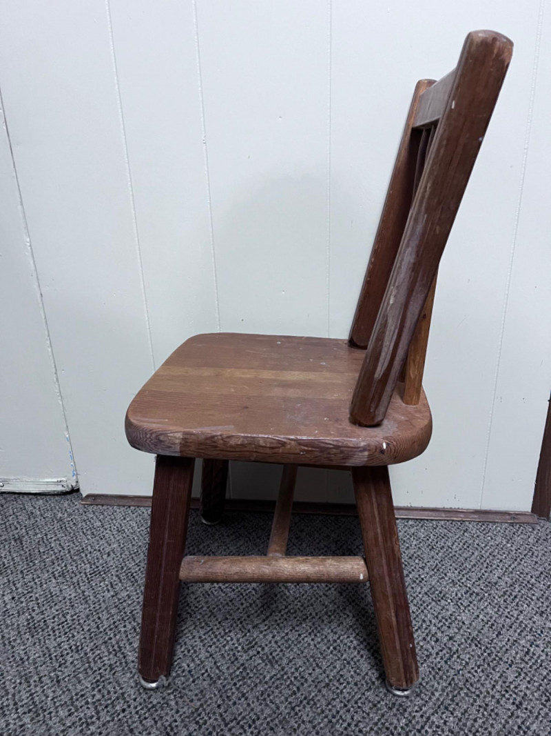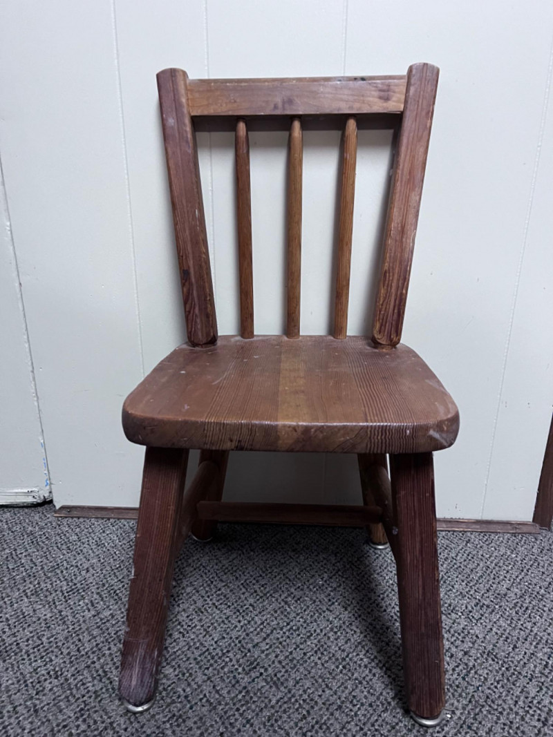 Child’s Wooden Chair Kid’s wooden chair with metal feet. Some paint and scratches. Seat height is 12.5”.