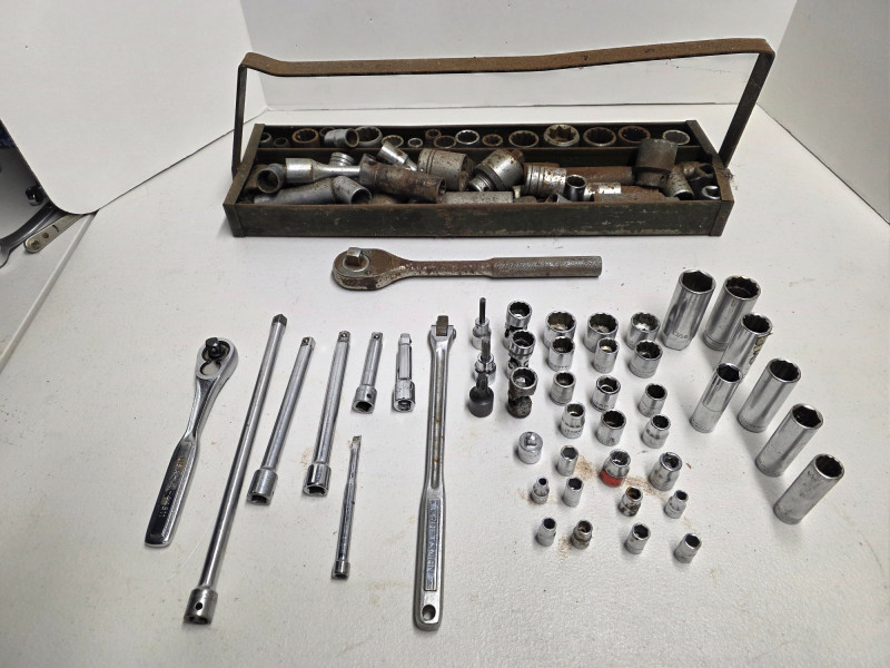 Huge Lot Of Craftsman Ratchet & Sockets (3/8" & 1/2" Drive) Craftsman 3/8" drive ratchet, misc sockets (3/8" & 1/4"), adapters & extensions Proto 1/2" Drive ratchet, misc sockets & extension. Comes in metal tray See pics for condition