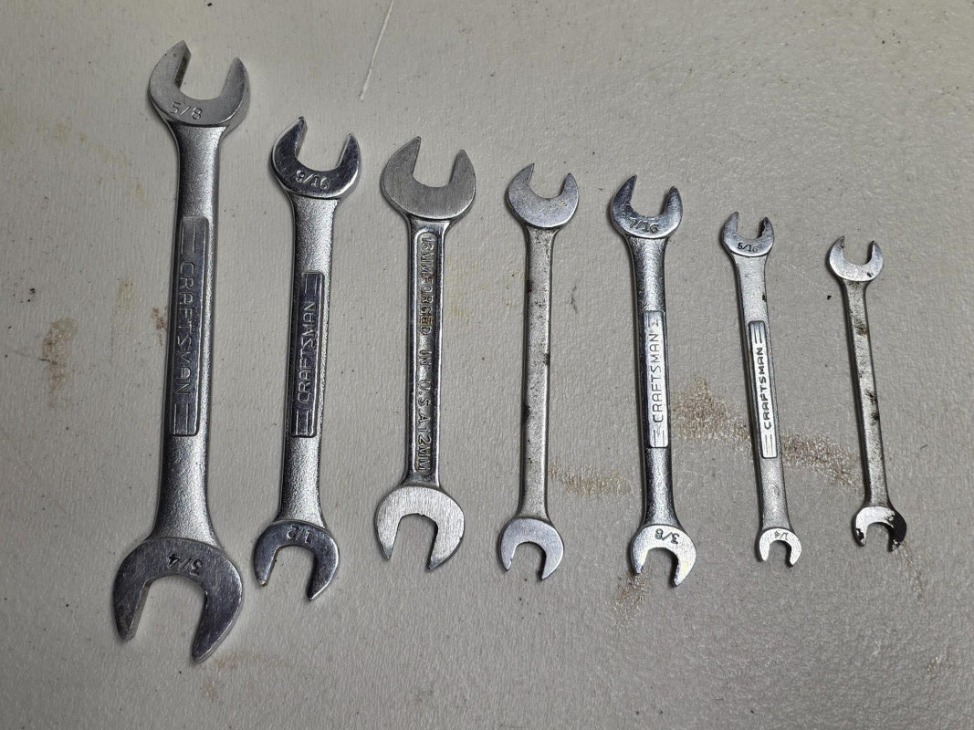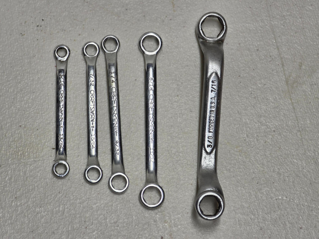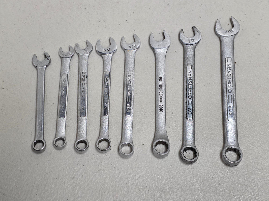 (25) Wrenches: Combination, Double Box, Open-End & Multi (11) Craftsman combination wrenches (11/32" - 1") (7) Open-end wrenches (1/4" - 3/4") (6) Double box-end wrenches (3/16" - 7/8") (1) Multi Wrench (3/8" - 13/16") 25 tools in all!