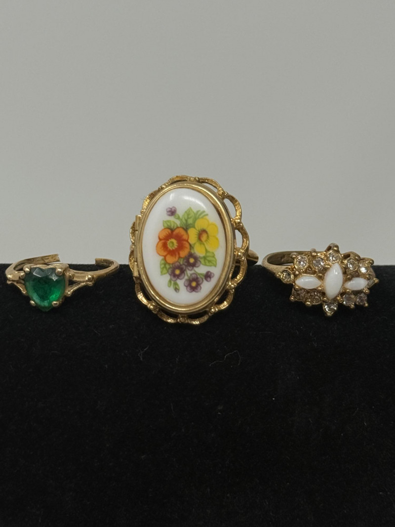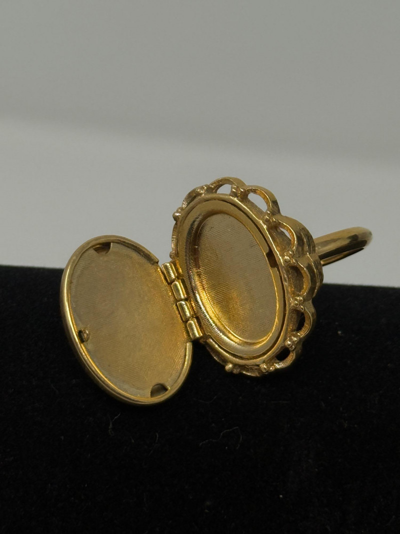 Lot # 134 - Avon Locket Ring - Emerald Green Heart 10K Ring - Cocktail Ring