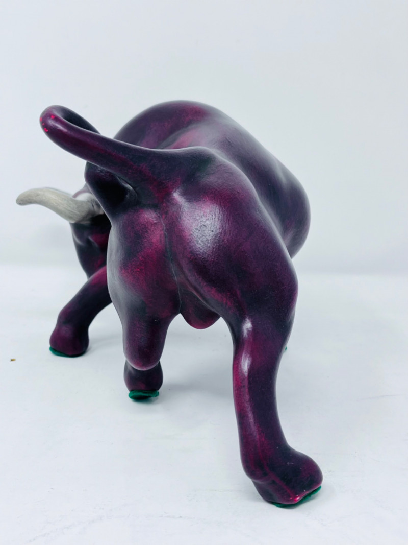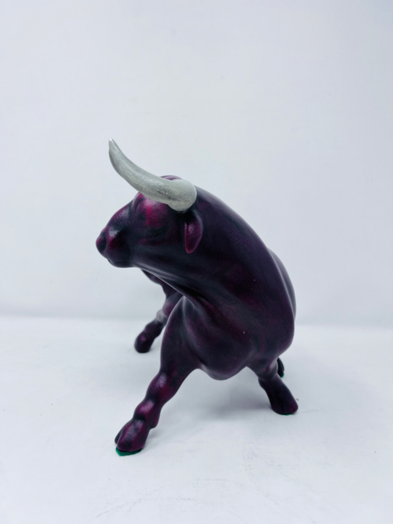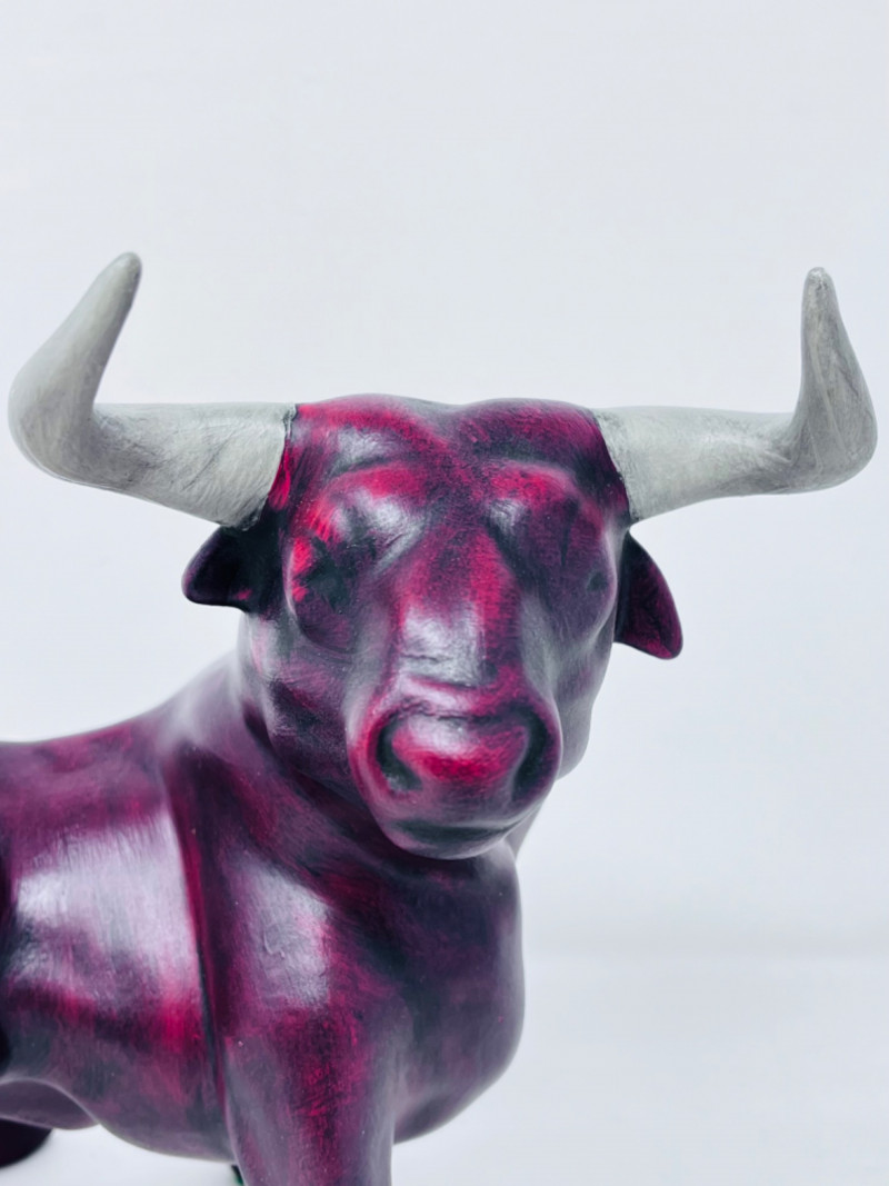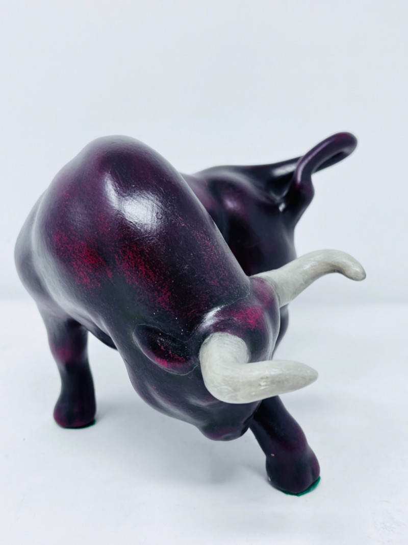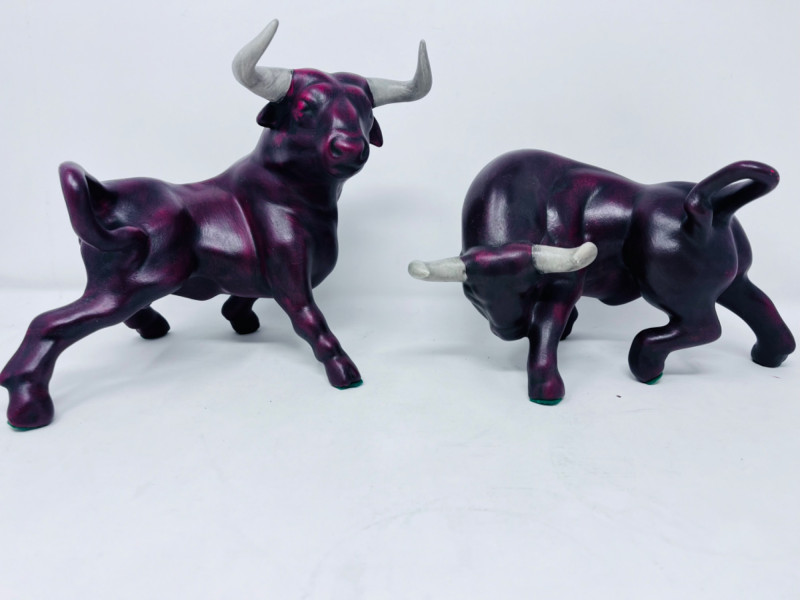 Two ceramic red and black bulls.