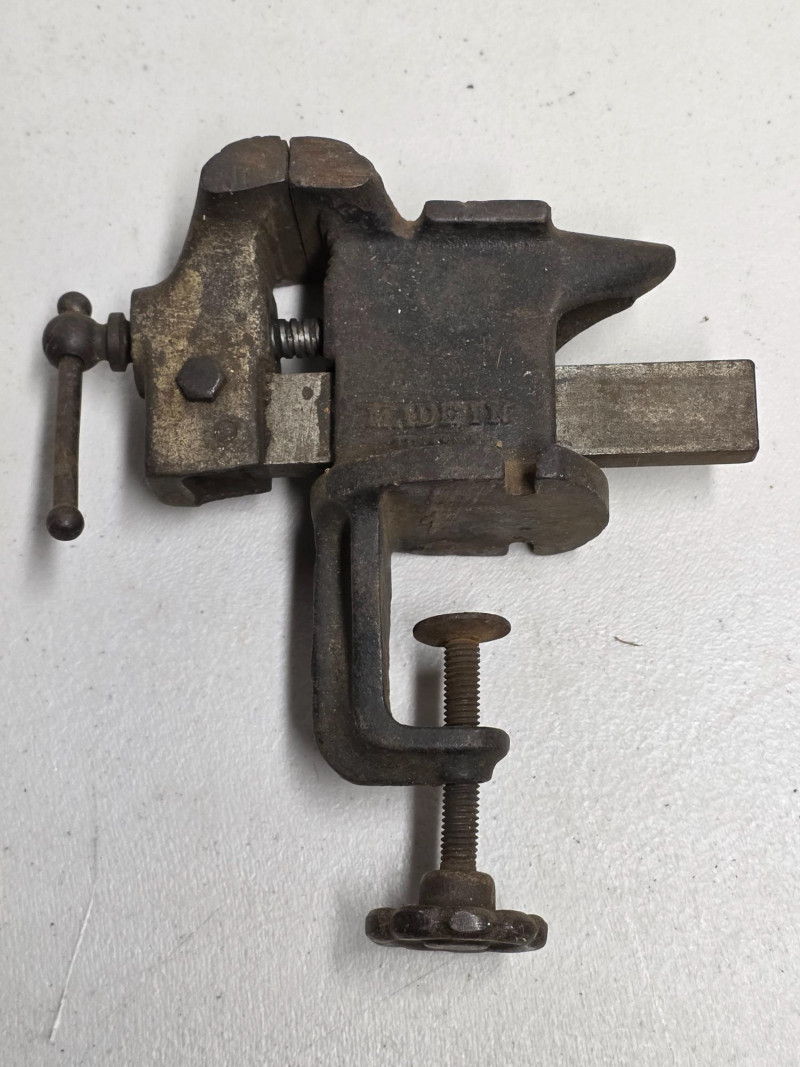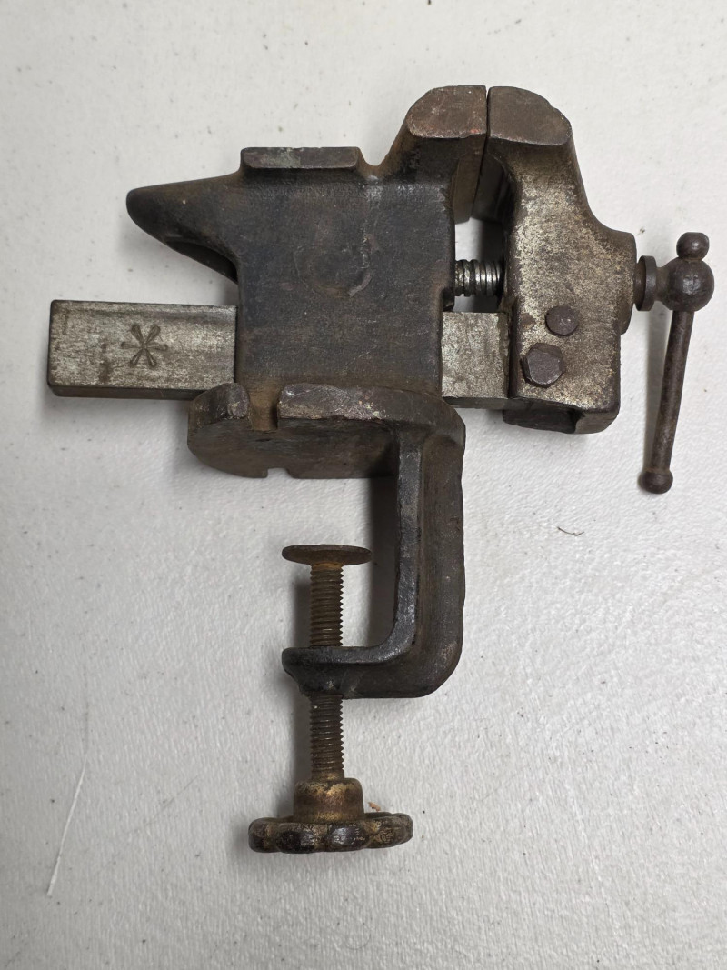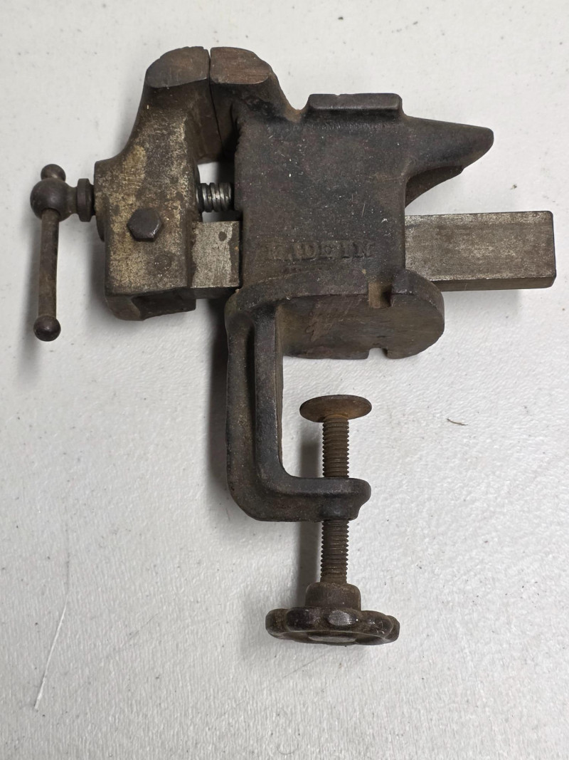 Vintage Pexto Cast-Iron 2.5" Jaw Clamp-On Table Vise Made by Pexto (Peck, Stow & Wilcox) The Pexto 2.5-inch vise is a jeweler's, watchmaker's, or small bench vise, made in the USA Features durable cast iron construction and a clamp-on mechanism for portability or non-permanent mounting to a table or workbench 8"T x 7"W
