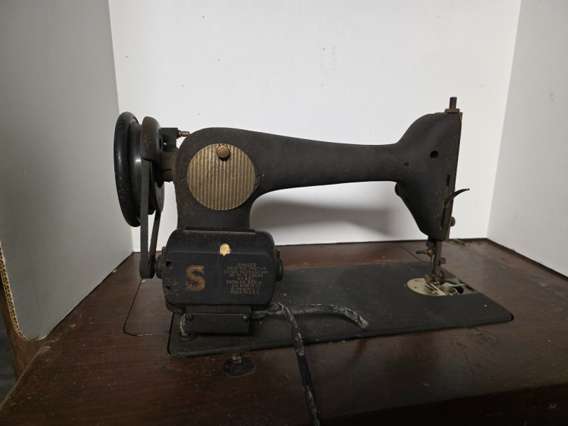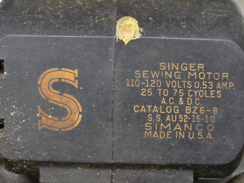 Vintage Singer Model 66 sewing machine with a crinkle or "Godzilla" finish. Manufactured 1947-1948 It features a low shank and an oscillating hook. It uses Class 66 bobbins and 15x1 needles. The machine is designed for a straight stitch and does not have a back-tack (reverse stitching) feature. It is often found in a cabinet and can be powered by a motor or a treadle system See pics for condition! Untested 31"T x 23.5"W x 16.5"D