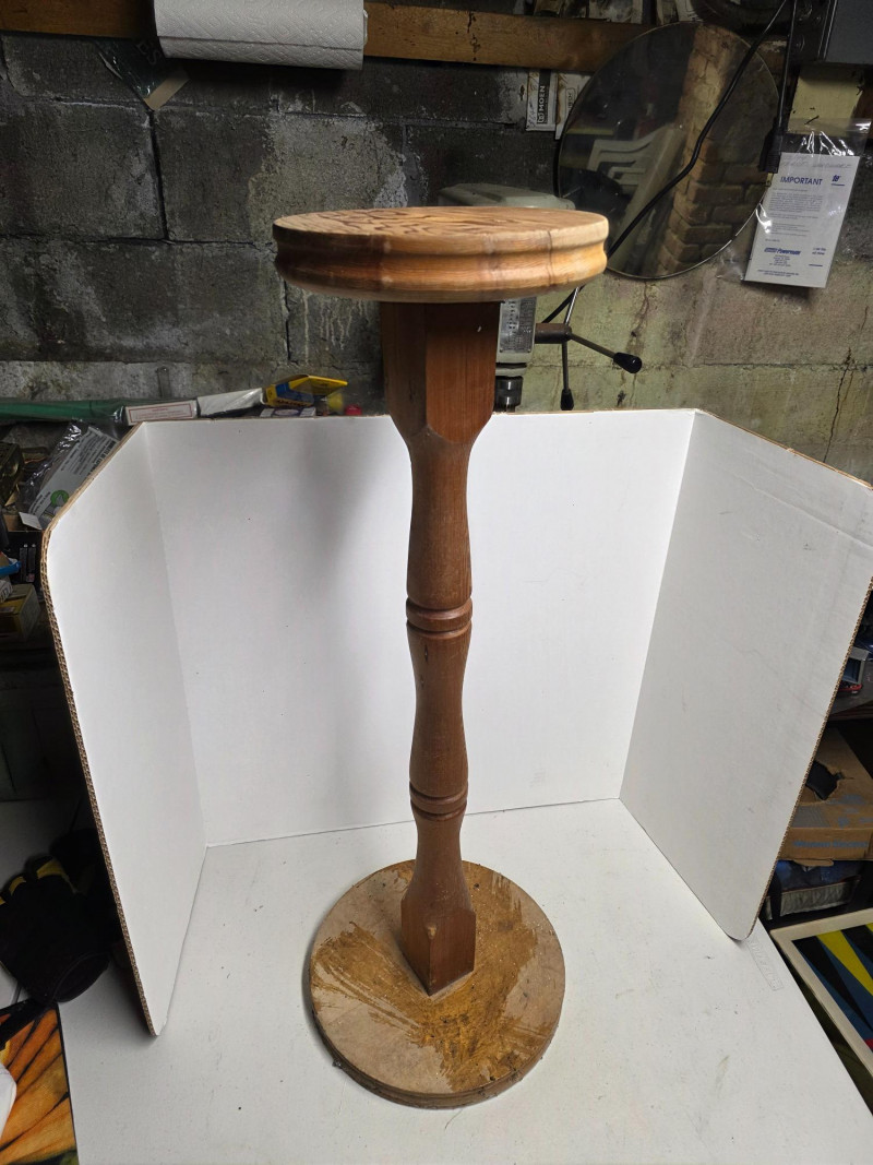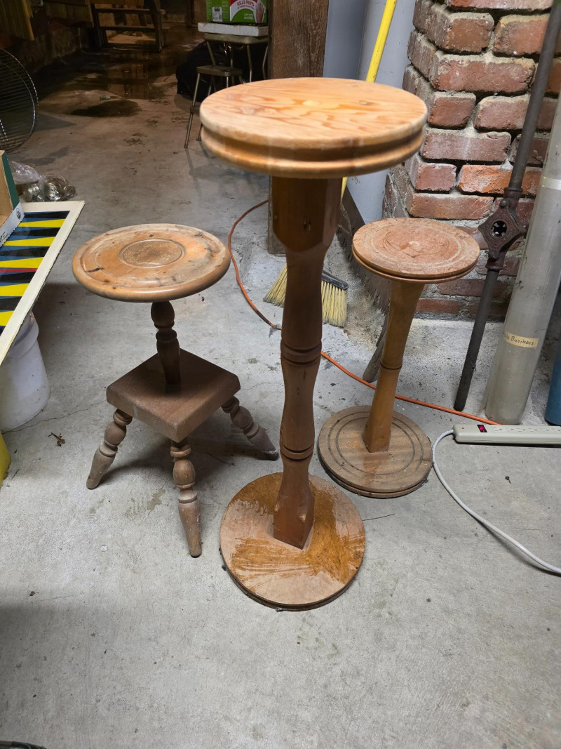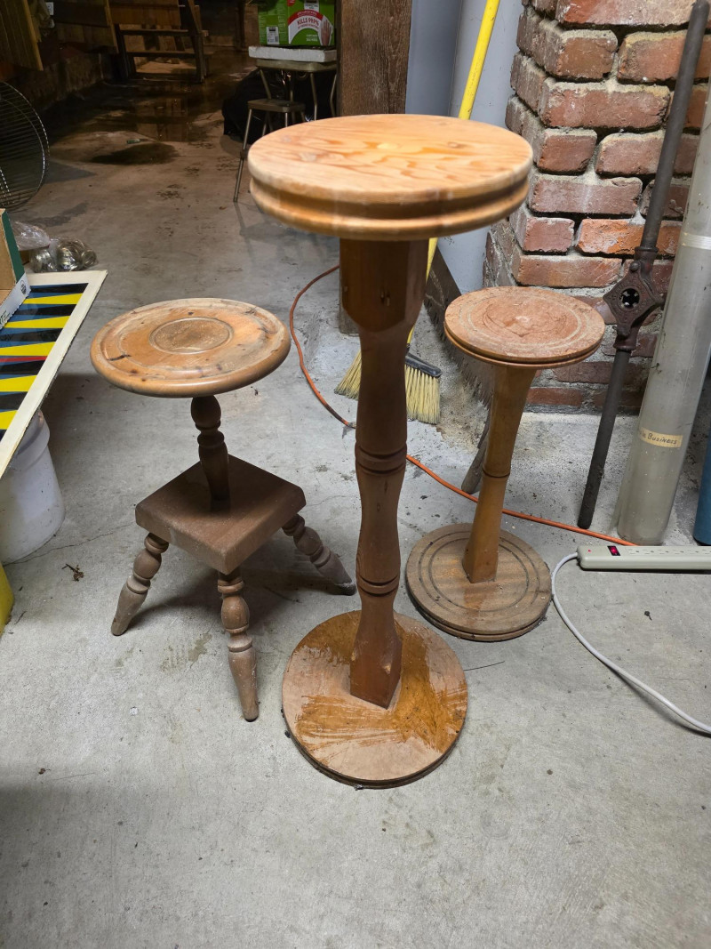 (3) Wooden Plant Stands 32.5"T 22.5"T 22"T Sturdy plant stands need a cleanup!