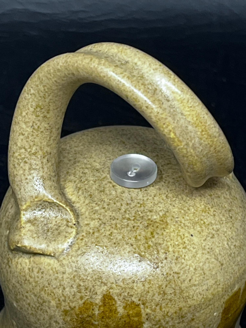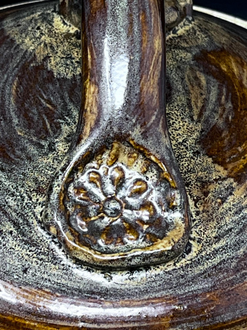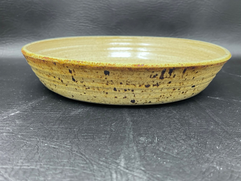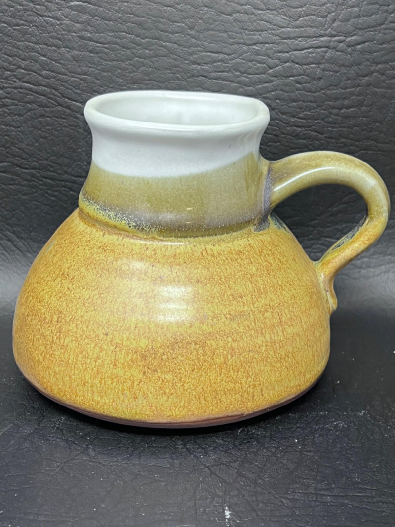 Pottery Dishes Handmade pitcher with lava boy design and a mustard glaze. Handmade pottery pot with lid and cat tail motif. 9.5”x8”x7.5” handmade pottery pitcher with cat tail motif. Handmade pottery bowl. 9.5”