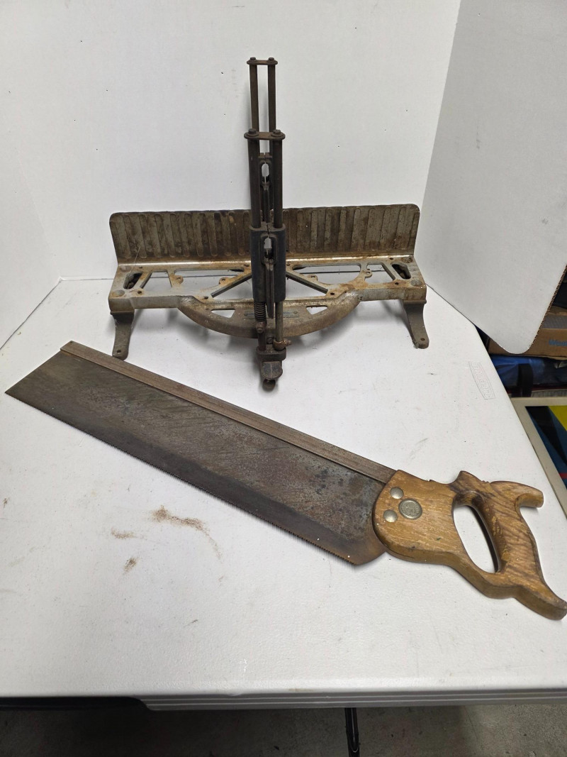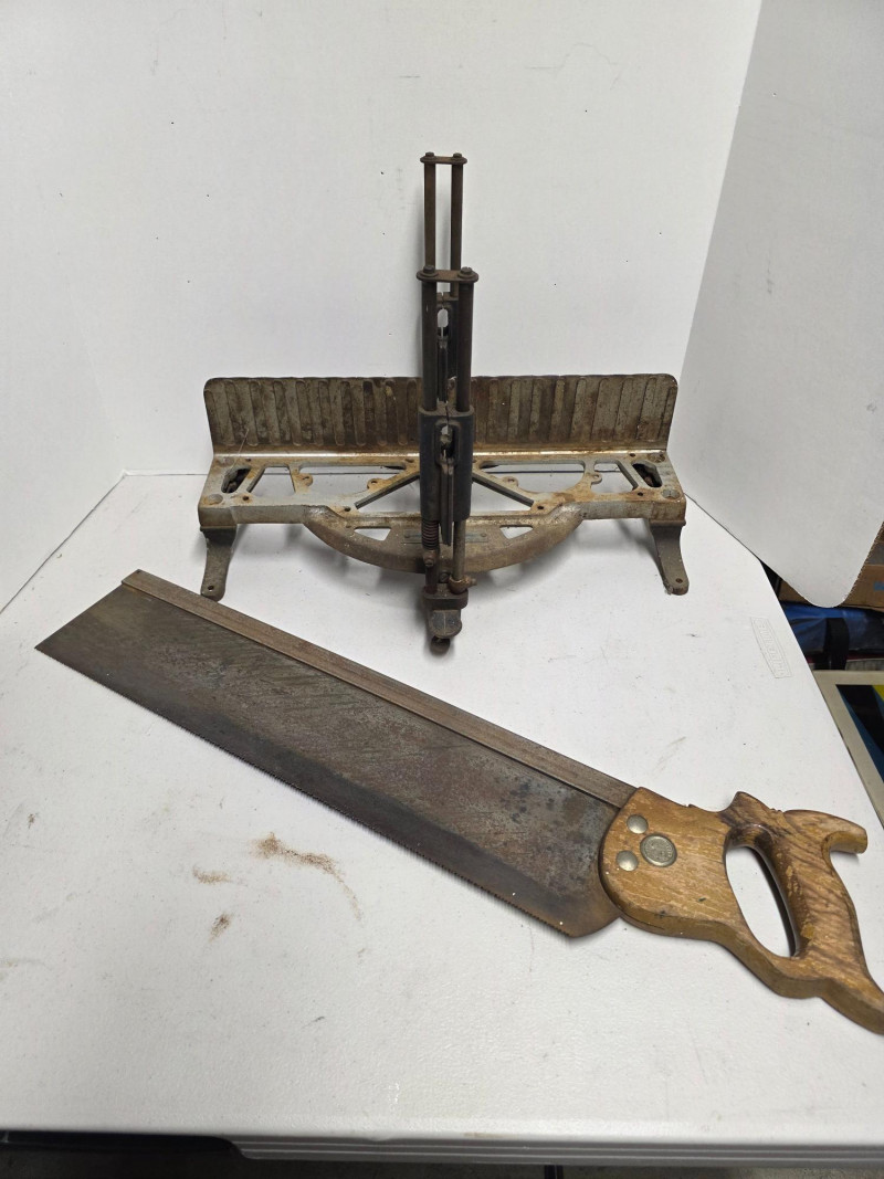 Lot # 181 - VIntage Lakeside Cast Iron Miter Box & 21" Miter Saw